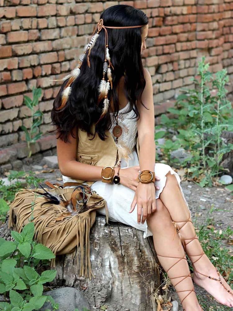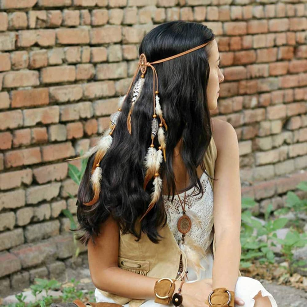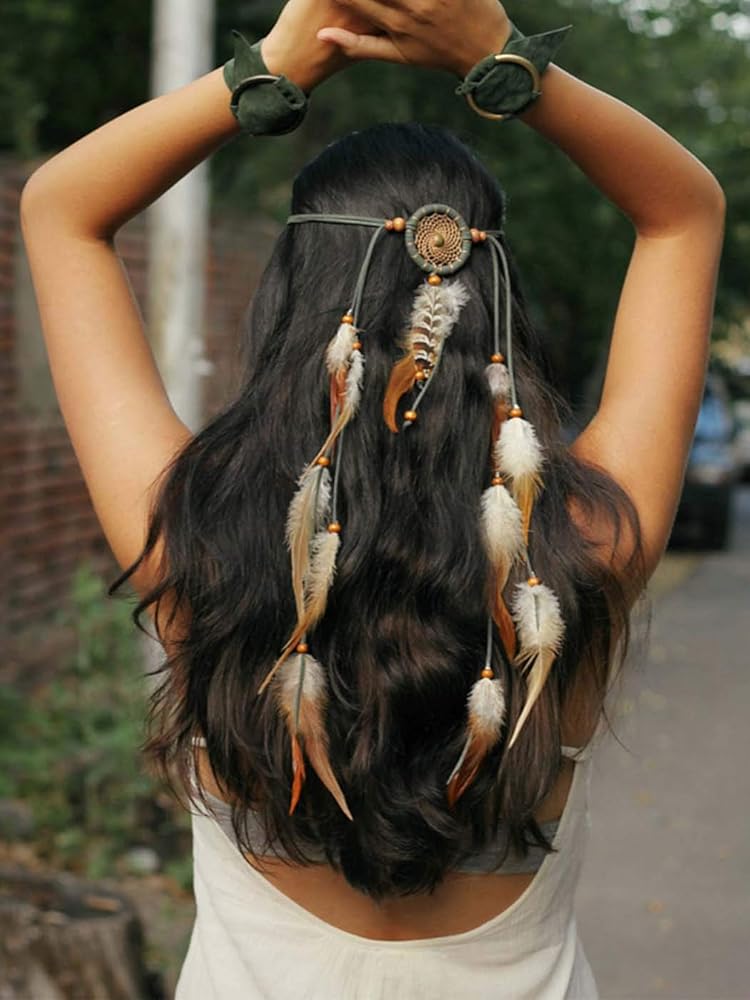 اوتيوا شريط راس طويل من الريش بنمط بوهو مناسب للهالوين، مجوهرات شعر هندي للنساء والفتيات