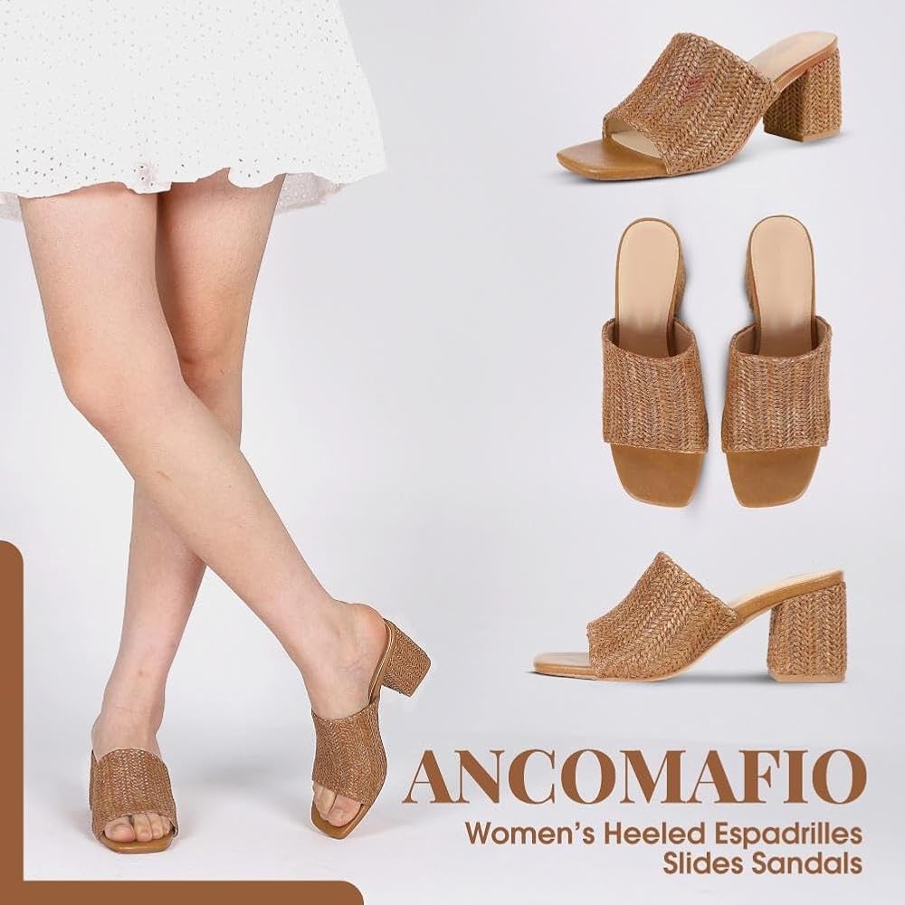 صنادل Ancomafio بكعب عالٍ للنساء، صنادل إسبادريل منزلق، صنادل مربعة من الأمام بكعب عالٍ مكتنز، أحذية صيفية أنيقة للاستخدام في الهواء الطلق سهلة الارتداء للحفلات