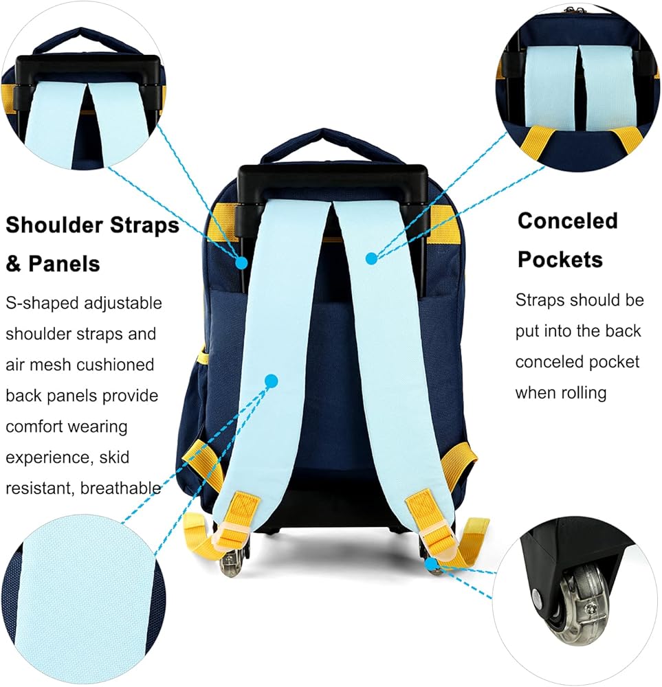 🐅تصميم خاص: يمكن سحب المقبض القابل للتعديل بسهولة من قبل الأطفال في مرحلة ما قبل المدرسة والأطفال الذين يتراوح طولهم من 36 إلى 52 بوصة. لوحة مبطنة سميكة إضافية في الجانب الخلفي وغطاء عجلة مخفي بمرونة، سواء كنت تريد استخدامها كحقيبة ظهر أو حقيبة عربة، فهي مريحة للغاية.