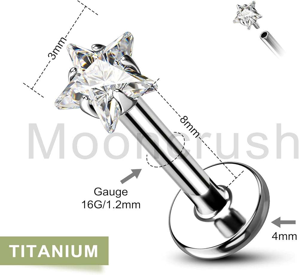 [المادة] هذا القرط الغضروف 16 جرام مصنوع من التيتانيوم النقي G23 المزروع، أخف من الفولاذ المقاوم للصدأ 316، أكثر راحة في الارتداء، خالي من النيكل والرصاص، 100% لا يسبب الحساسية، مناسب للبشرة الحساسة. جودة أفضل للارتداء لفترة طويلة.