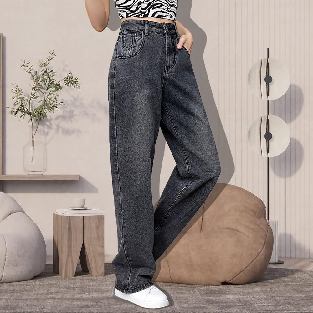 ★المطابقة: يسهل تنسيق الجينز الرمادي الفضفاض للسيدات مع البلوزة الأساسية والقميص الداخلي والقميص القصير والقميص والمعطف والأحذية الرياضية والكعب للحصول على مظهر عصري وأنيق. جينز بوي فريند من التسعينيات للفتيات المراهقات، مناسب للصيف/الربيع/الخريف/الشتاء.