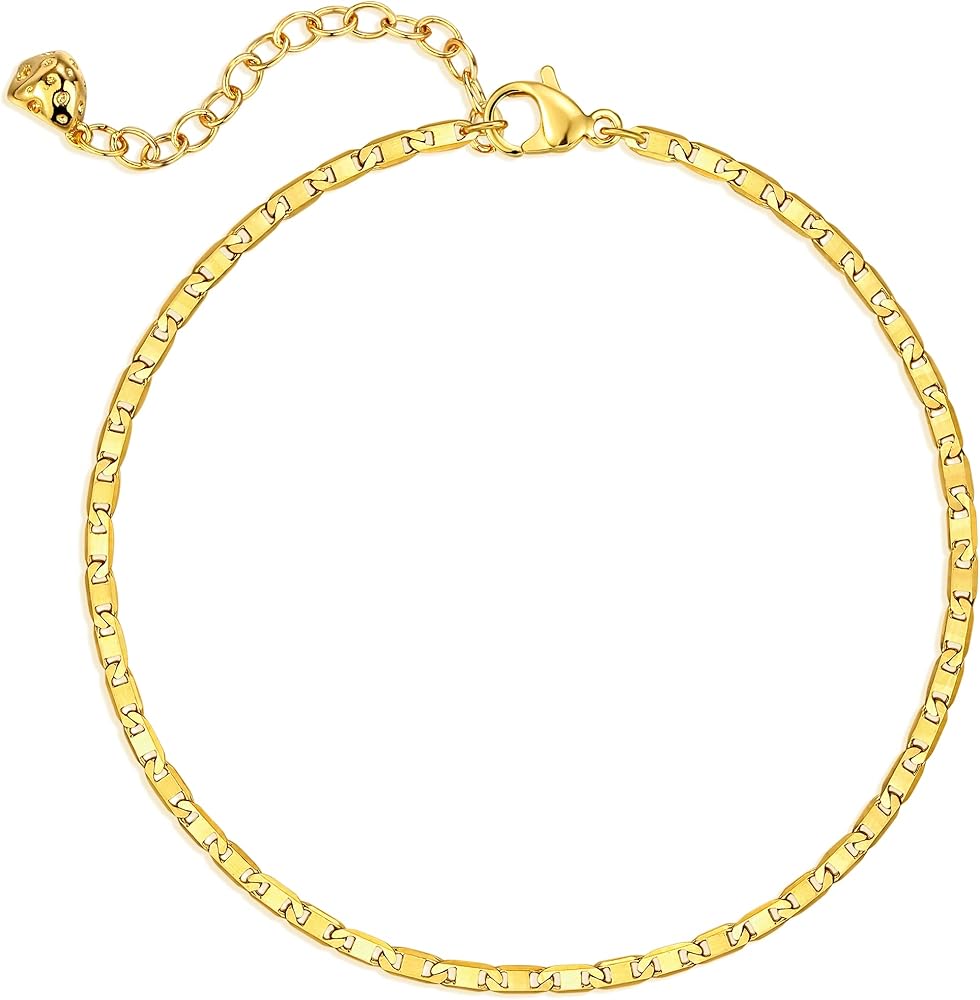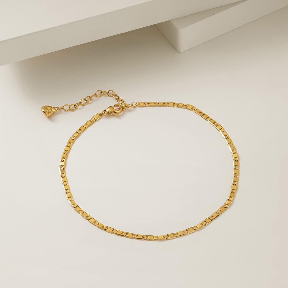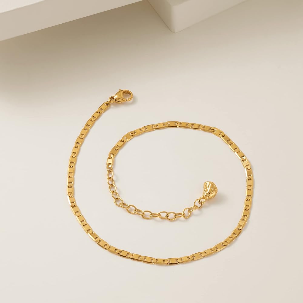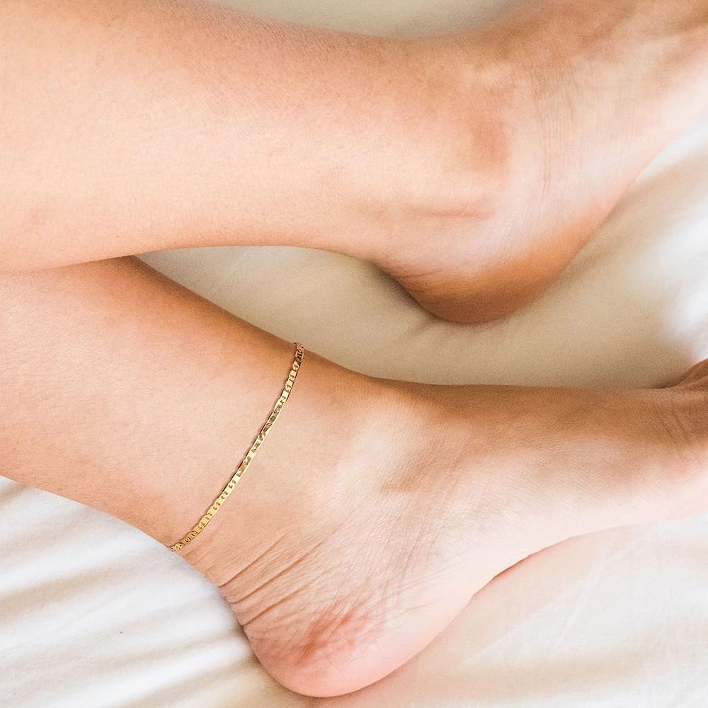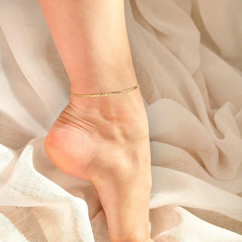 خلخال بخرز مسطح: هذا الخلخال المنقط مصنوع من سلسلة كروية مسطحة مقطوعة بالليزر 3 مم، السطح المقطوع بالليزر له نقاط عاكسة واضحة مما يجعل مجوهراتك لامعة ورقيقة.