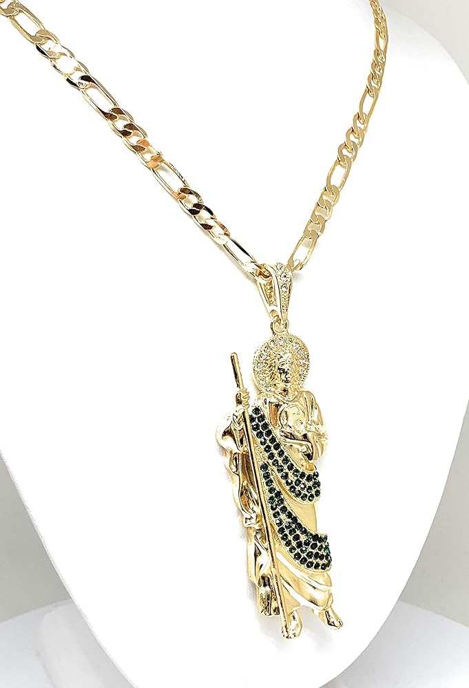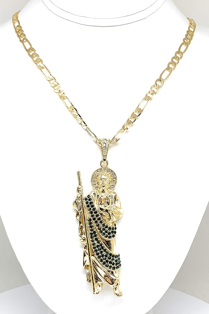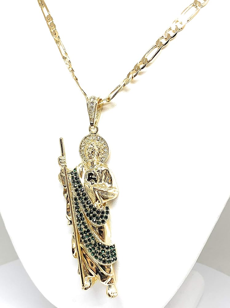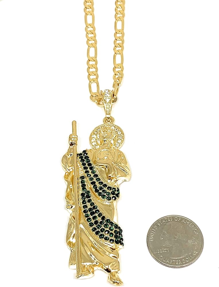 فران اند كو مجوهرات مطلية بالذهب كبيرة XL خضراء سانت جود قلادة فيجارو 26 انش سان جودا تاديو ميدالا كادينا اورو لامينادو, غير معروف