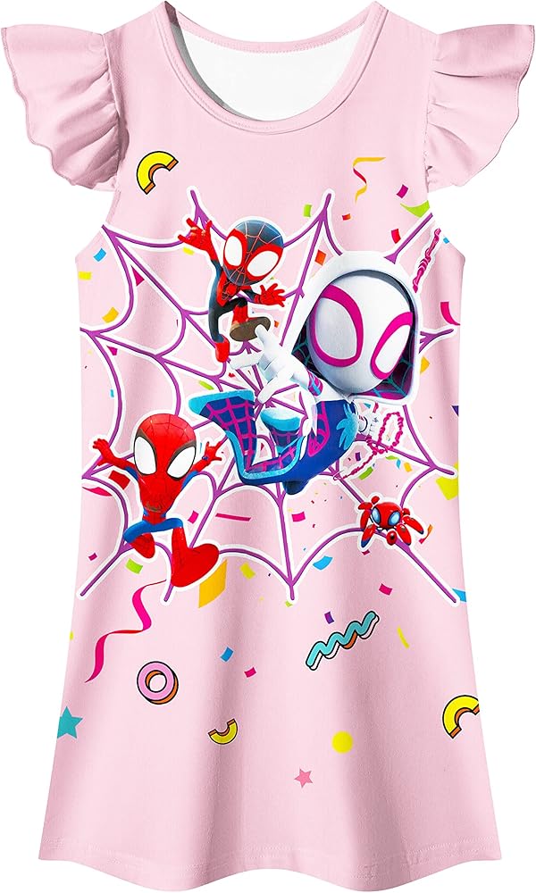 👗فستان تنكري للفتيات مطبوع عليه رسوم كرتونية مصنوع من أقمشة عالية الجودة وجيدة التهوية، مما يضمن أقصى درجات الراحة والمتانة طوال النهار والليالي.