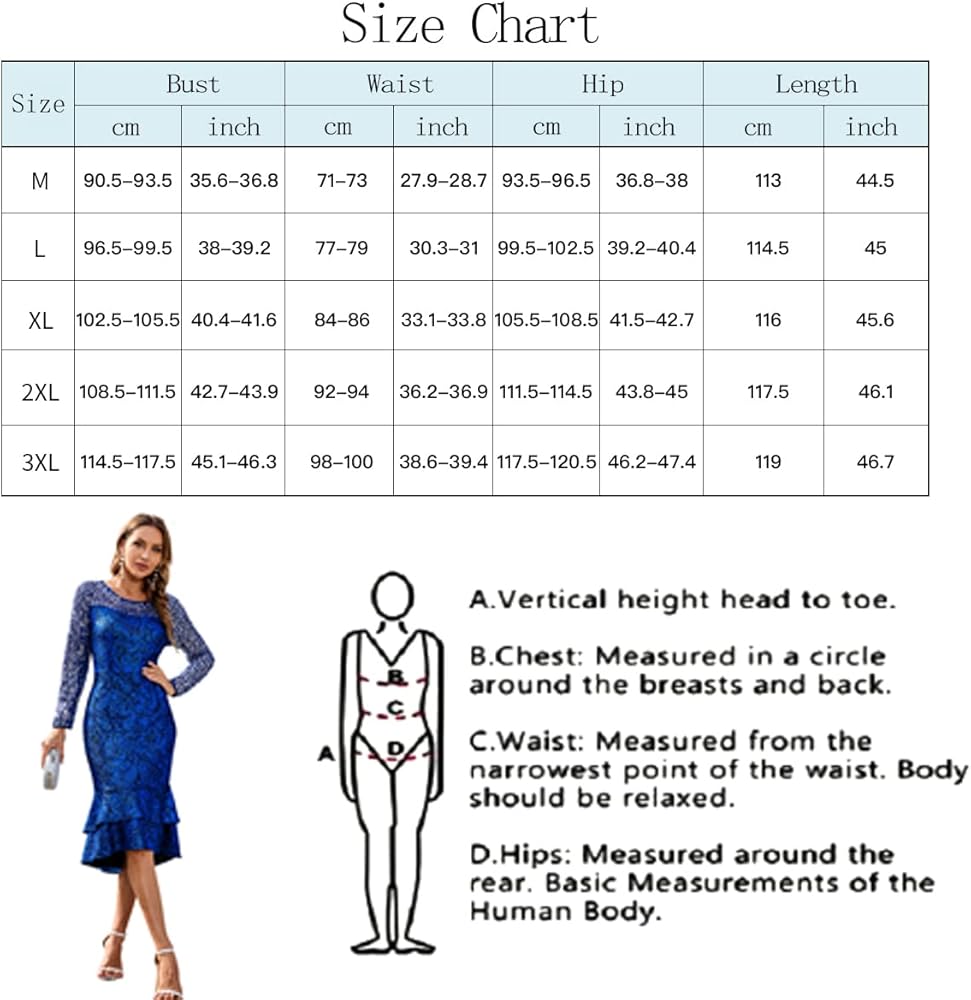 3XL (US:22-24): Dress Length:46.7 inch/119cm; Bust: 45-46.2 inch/114.5-117.5 m; Waist: 37.4-38.1 inch/95-97 cm; Hip:46.2-47.4/117.5-120.5cm