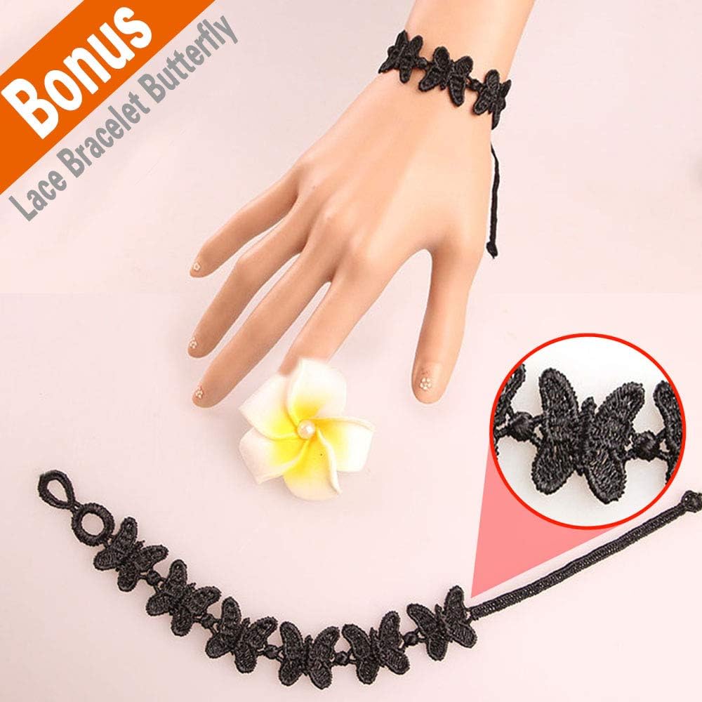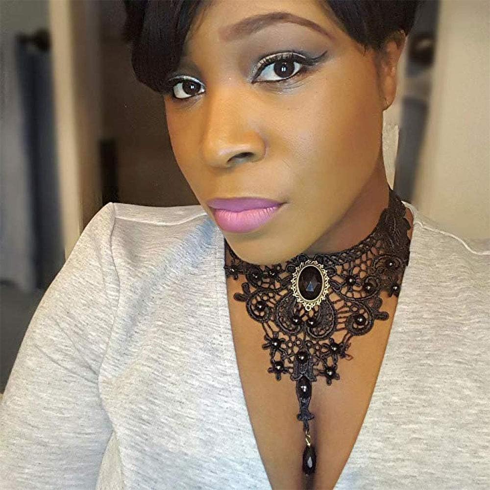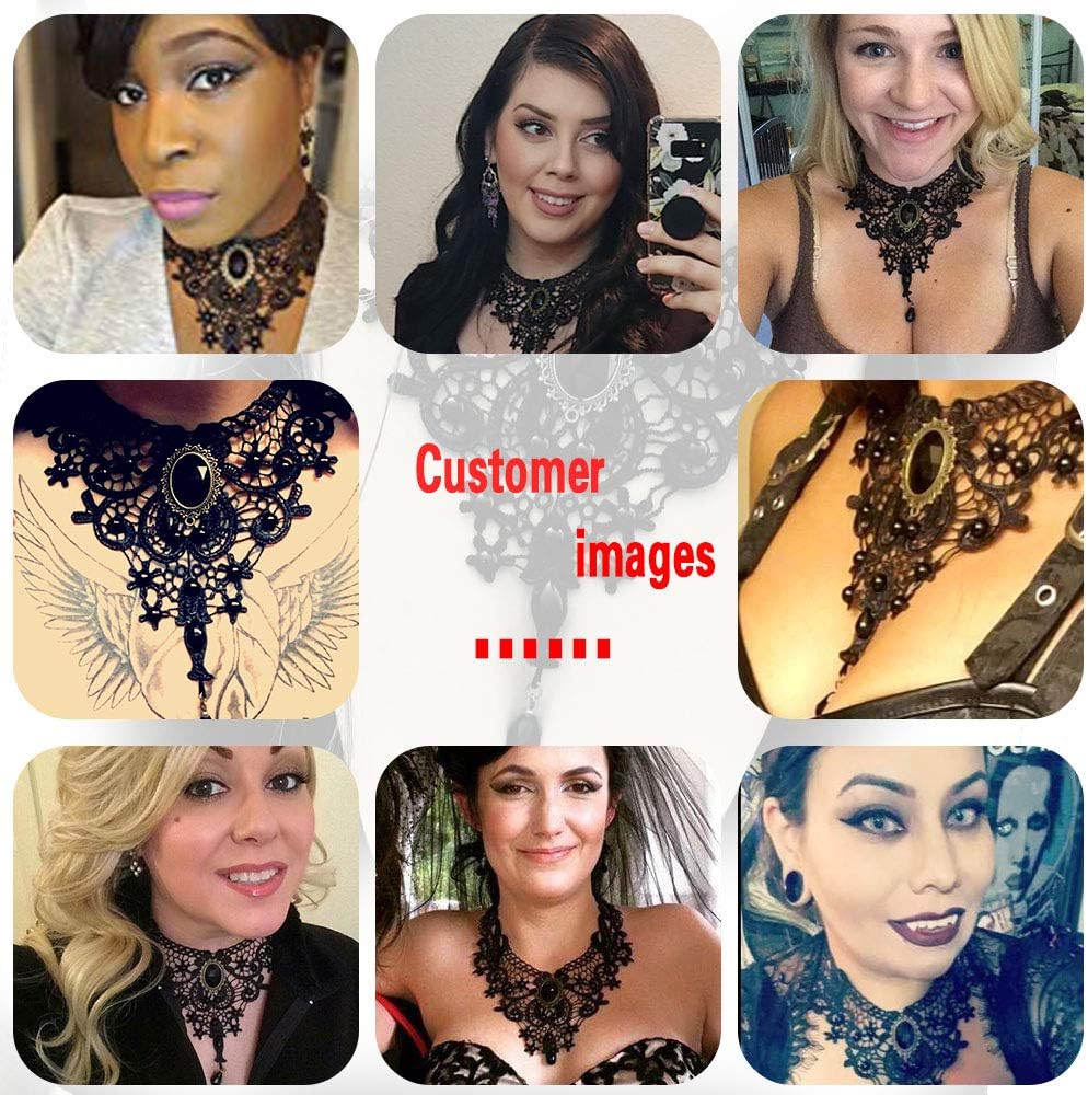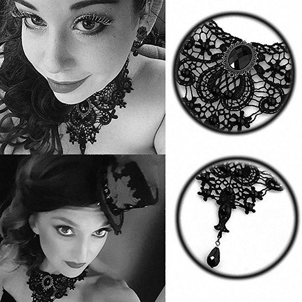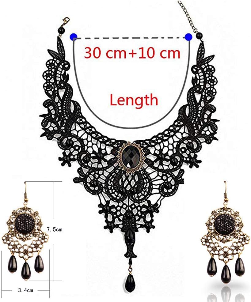 مجموعة قلادة من الدانتيل الأسود والأقراط ، قلادة سوداء من BagTu Gothic Lolita لحفلات الهالوين والزفاف (أسود)