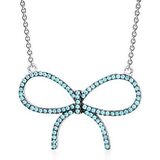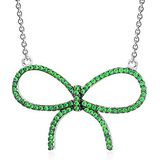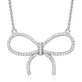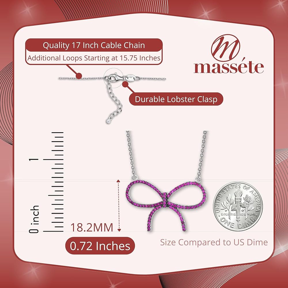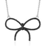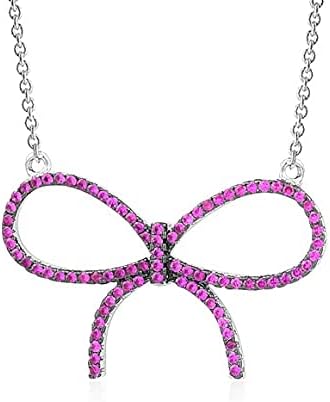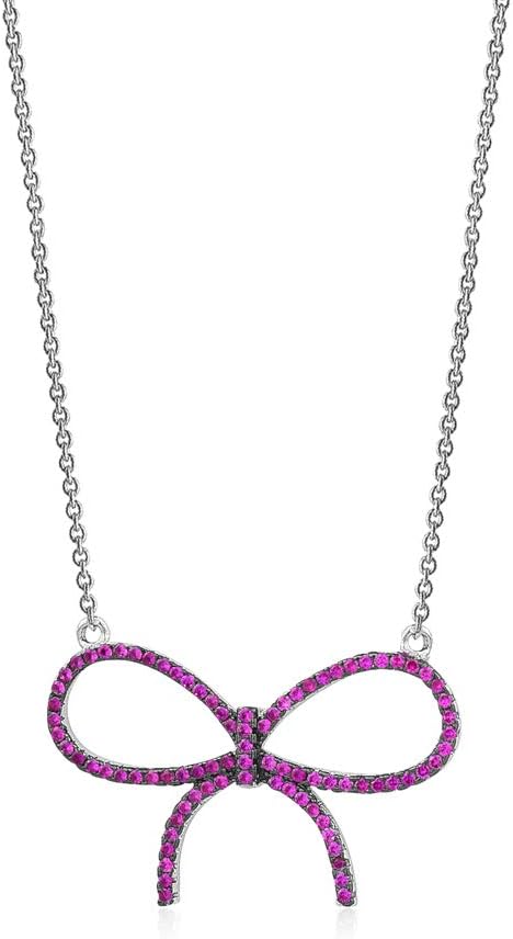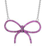 BEAUTIFUL FASHION STATEMENT - Sterling silver necklace pendant for girls large ribbon bow knot with deep pink cubic zirconia set on black rhodium; Flat cable chain 17" inches long