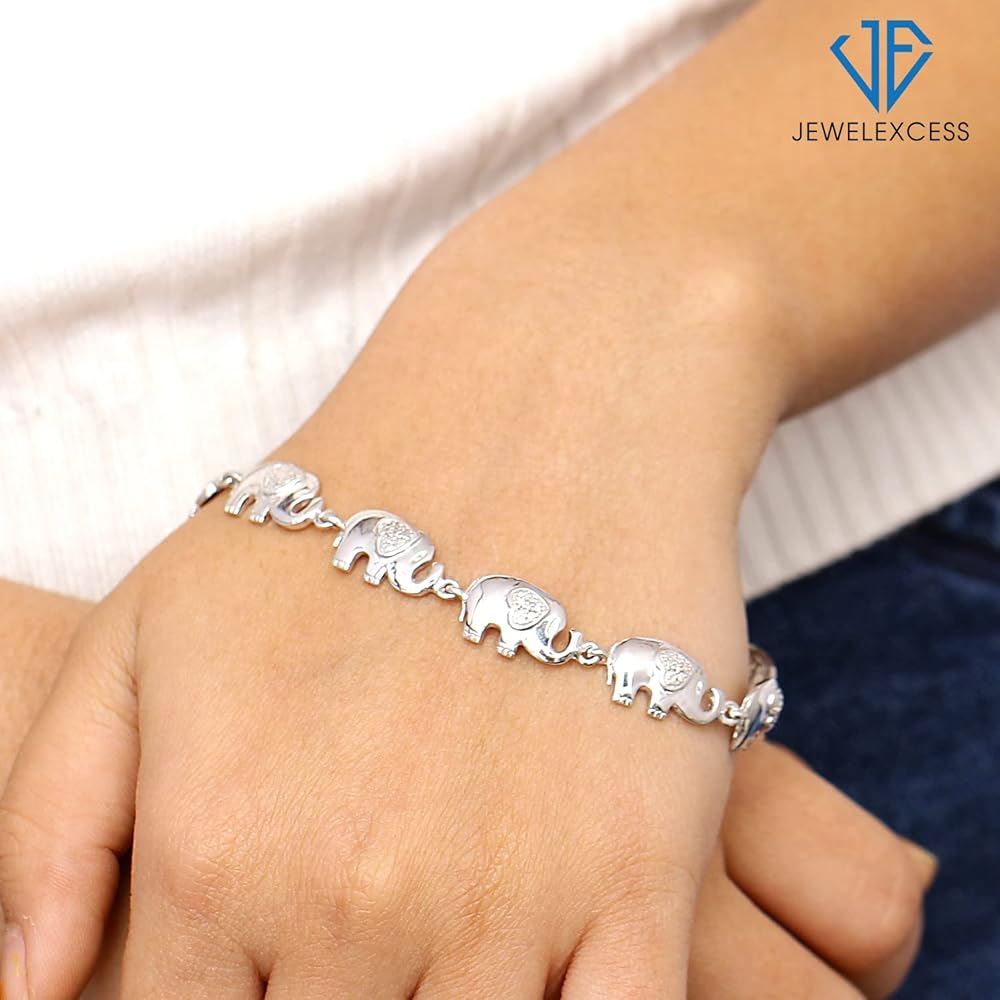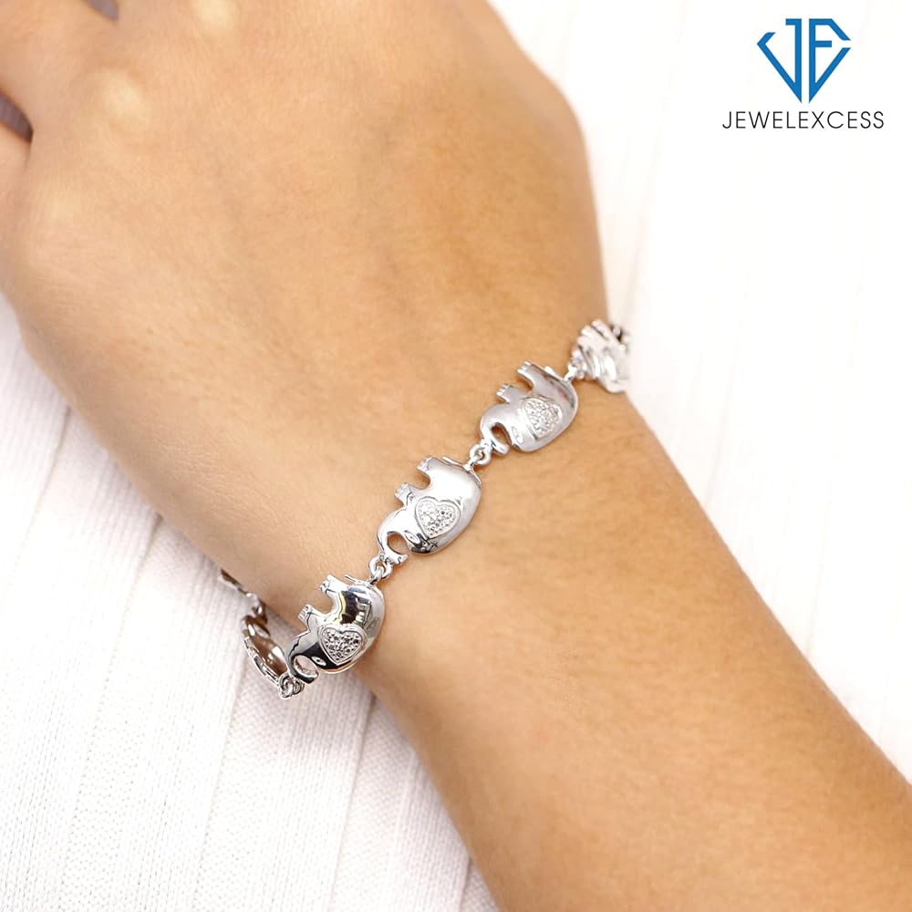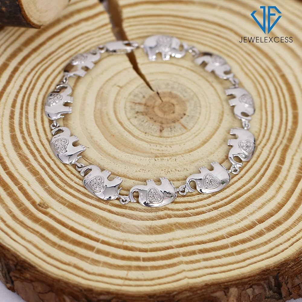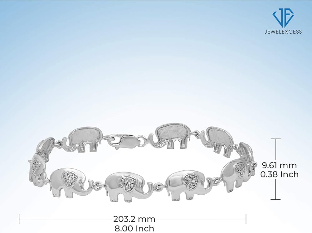 • تصميم ساحر يلتقي بالجودة الممتازة - يتميز بموضوع موكب الفيل الرائع، هذا السوار الرائع والمحبب على شكل فيل محظوظ سيجعلك تبتسم في كل مرة تنظر إليه. تضفي لمسات الألماس الأبيض الأصلية عيار 01 قيراط على سوارنا الفضي الفيل لمسة من التألق والتألق الذي يرفع من مستوى أي ملابس.