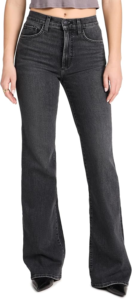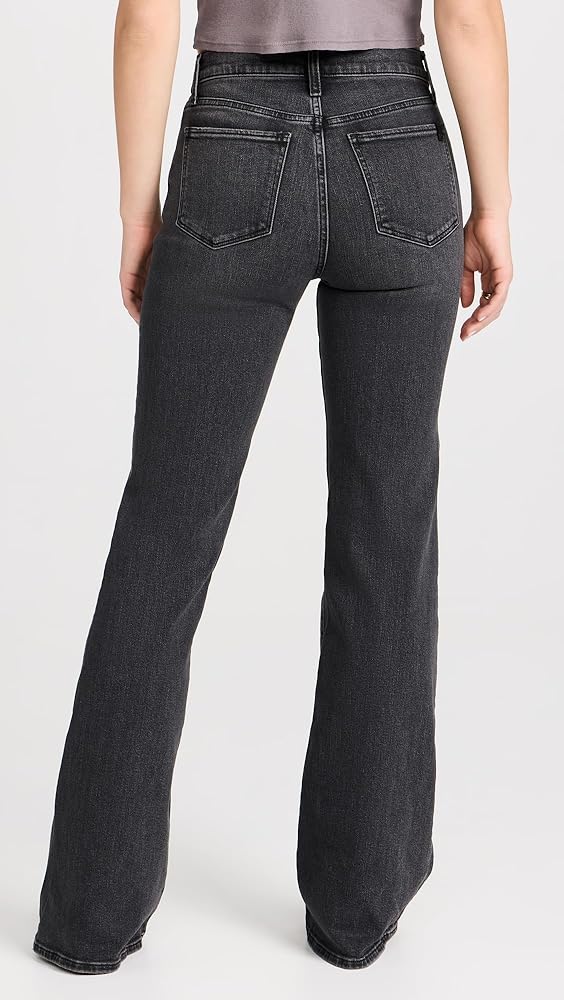 The Molly High-Rise Flare is fitted at the waist and kicked out at the wide hems, creating a curve-hugging '70s-inspired silhouette. These forever flattering jeans feature Flawless stretch denim in dark, off-black Self Love wash and are complete with slant front pockets.