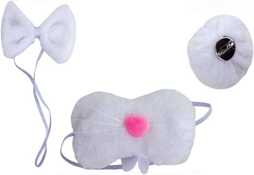 المقاس: يبلغ مقاس آذان عصابة الرأس حوالي 7 × 3.5 بوصة، والأنف 5.1 × 2.7 بوصة، والذيل 2.7 بوصة، وربطة العنق 3.9*2.7 بوصة، مقاس واحد يناسب سن 3 سنوات فما فوق، والأطفال حتى البالغين الصغار.
