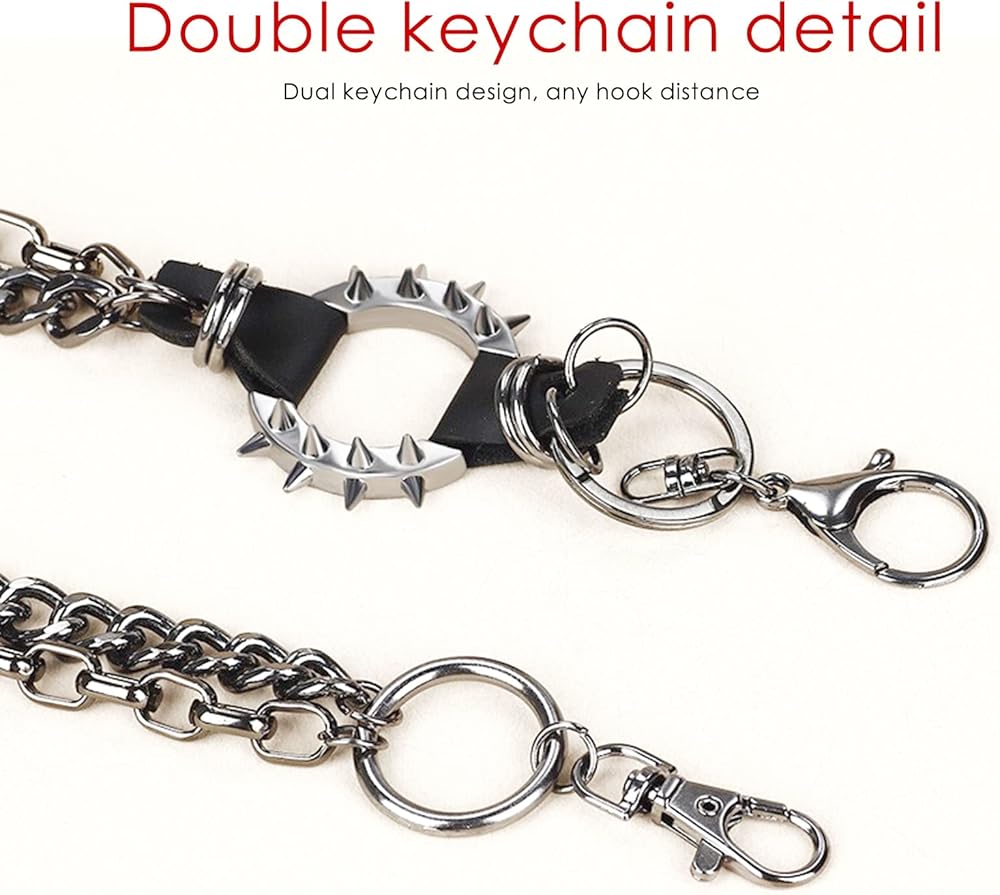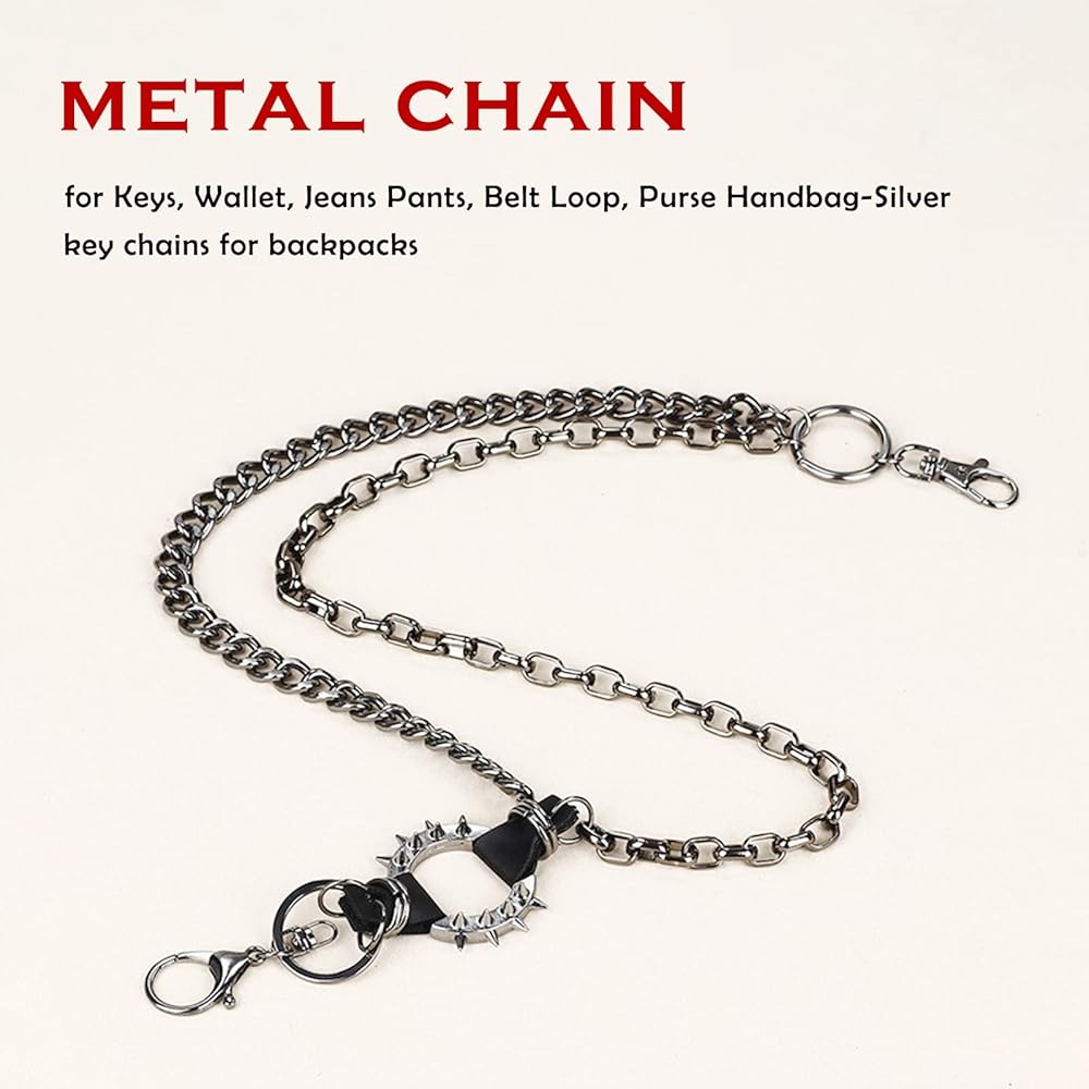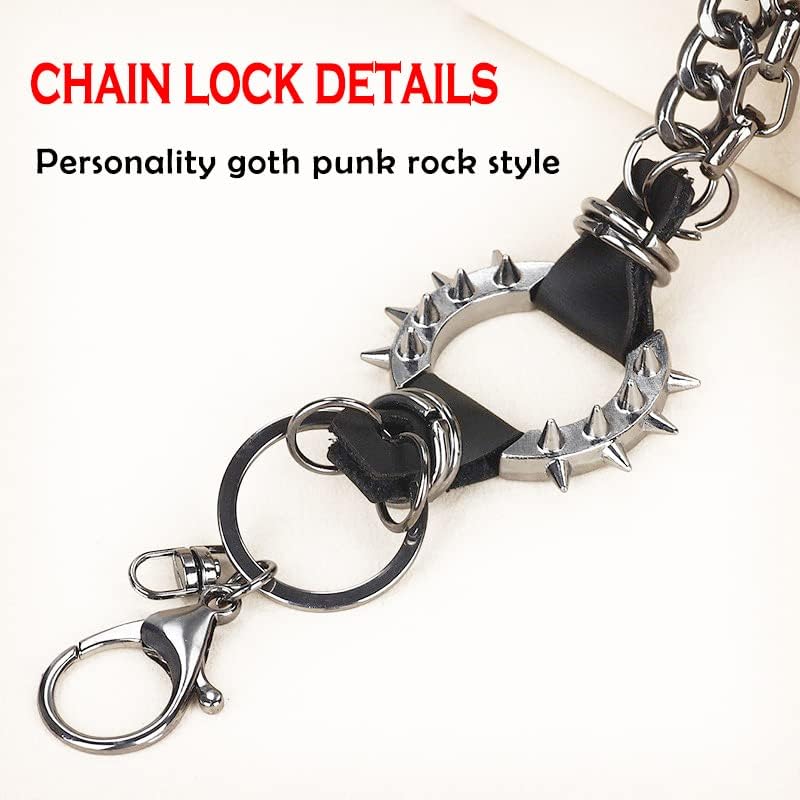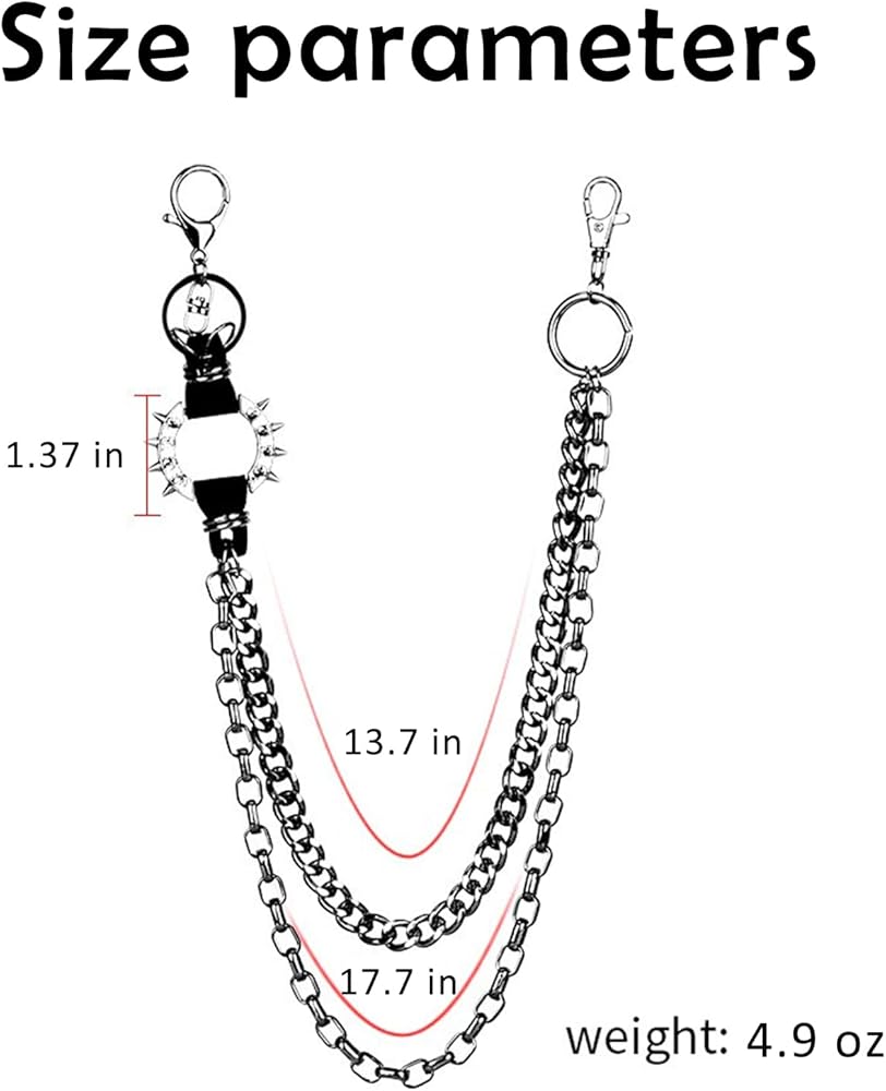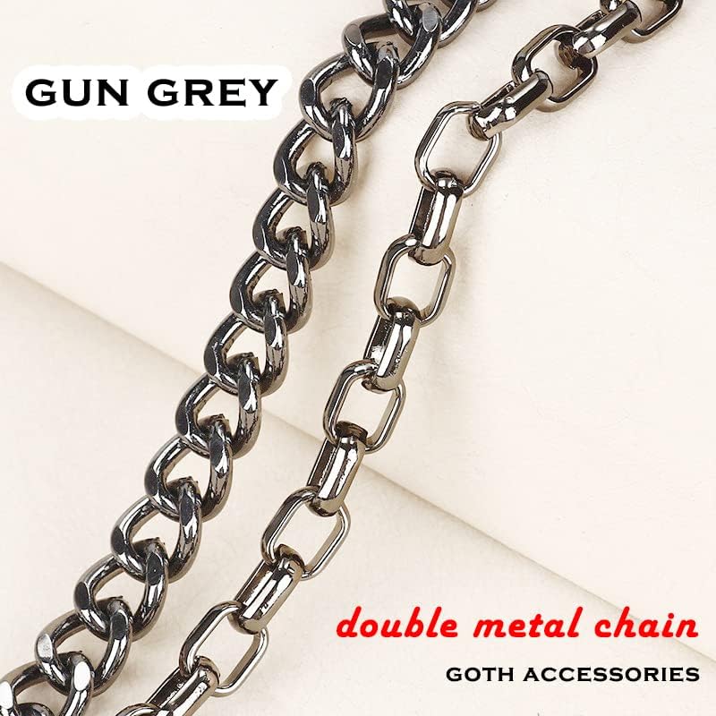 【جودة ممتازة】تعتمد سلسلة البناطيل على تصميم سلسلة مزدوجة، مادة خليط معدني، سميكة جدًا ولامعة وذات ملمس جيد، لا تبهت أو تصدأ، مشبك قوي ومتين، إنها إكسسوار قوطي موثوق به