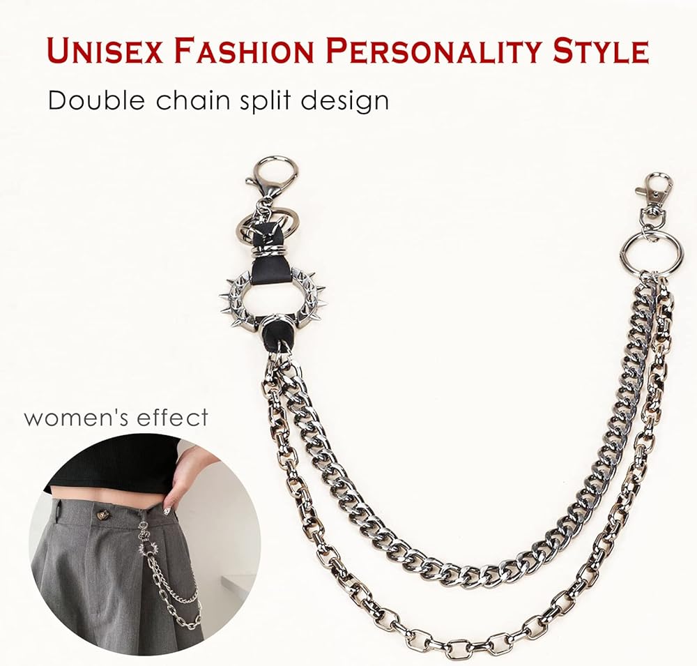 بالنسبة للجمهور المهتمين بالموضة والروك والهيب هوب والبانك وراكبي الدراجات، فإن حزام السلسلة هذا هو خيار جيد جدًا كأكسسوارات القوطي وإكسسوارات البانك