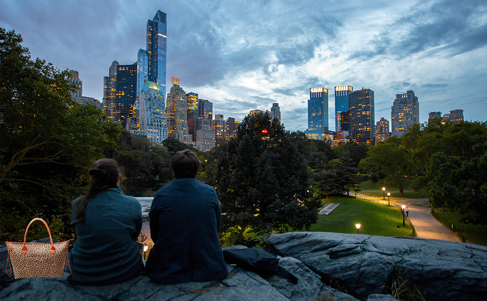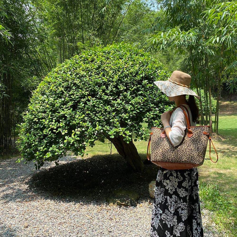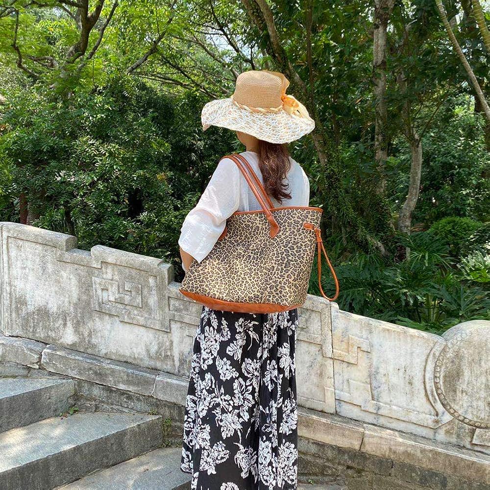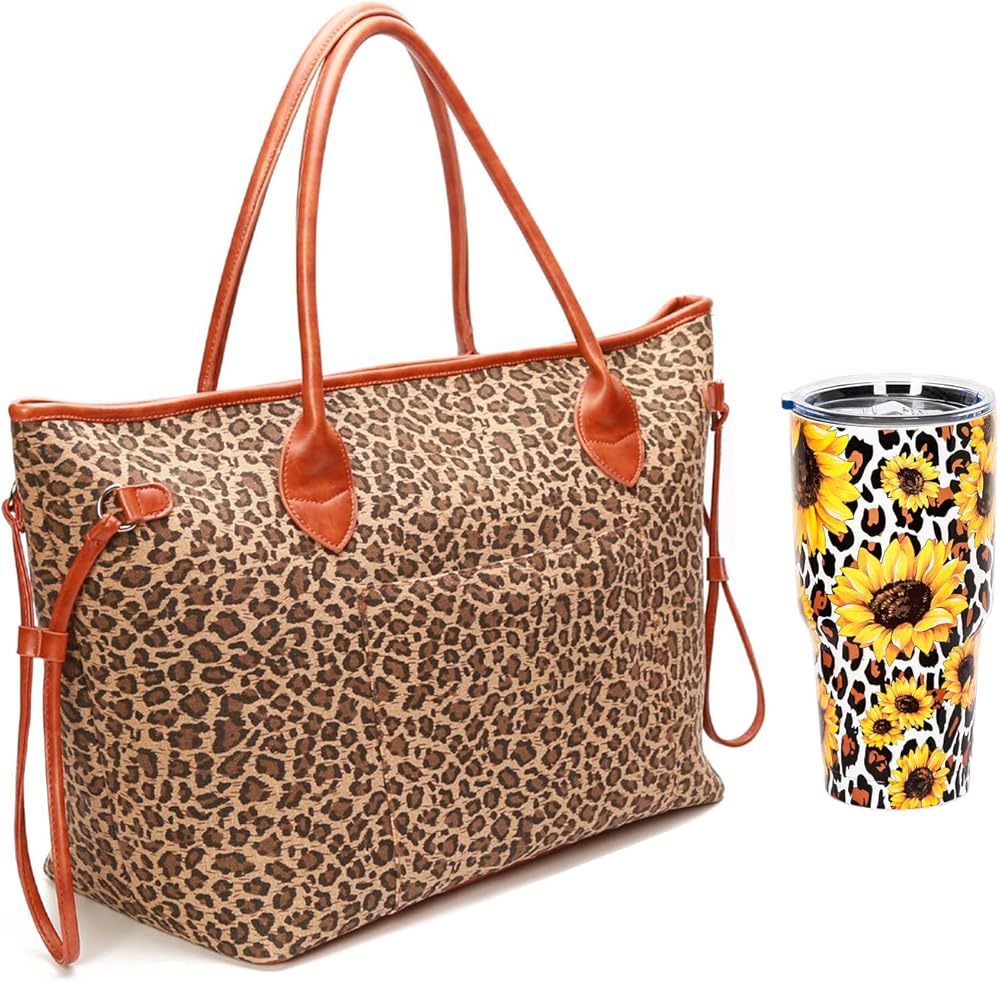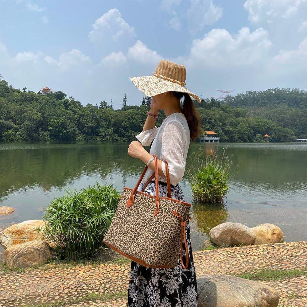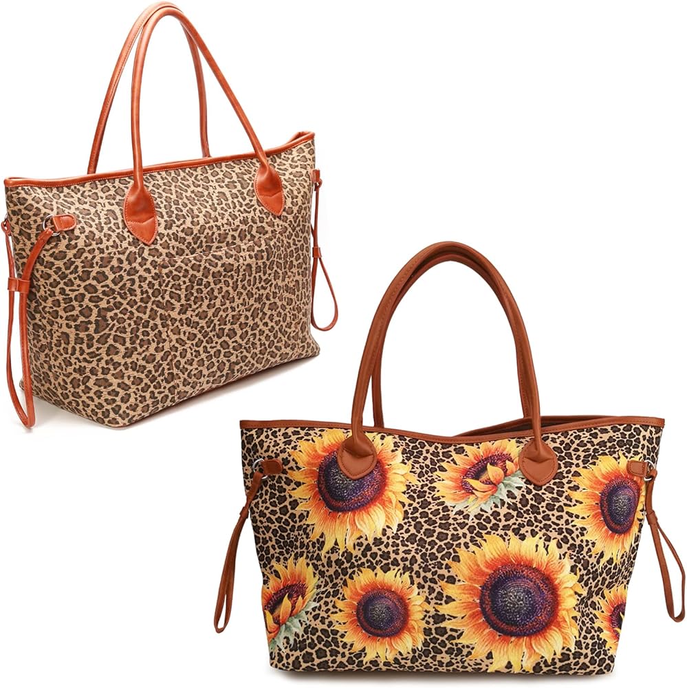 حقيبة اليد الكبيرة هي التصميم الحصري للمصمم مع نمطين فريدين وأنيقين: طباعة الفهد/نمر عباد الشمس.