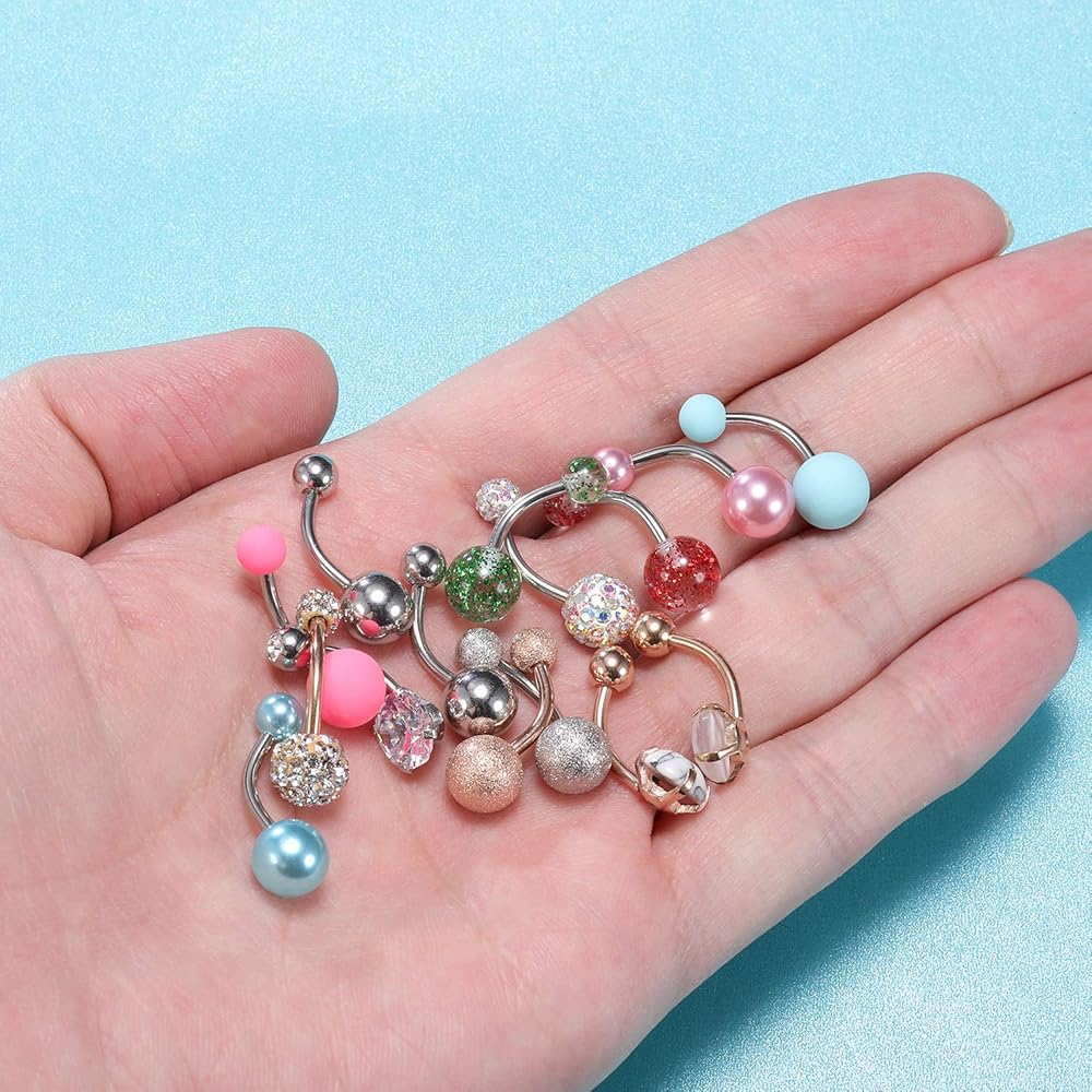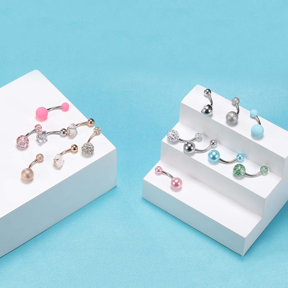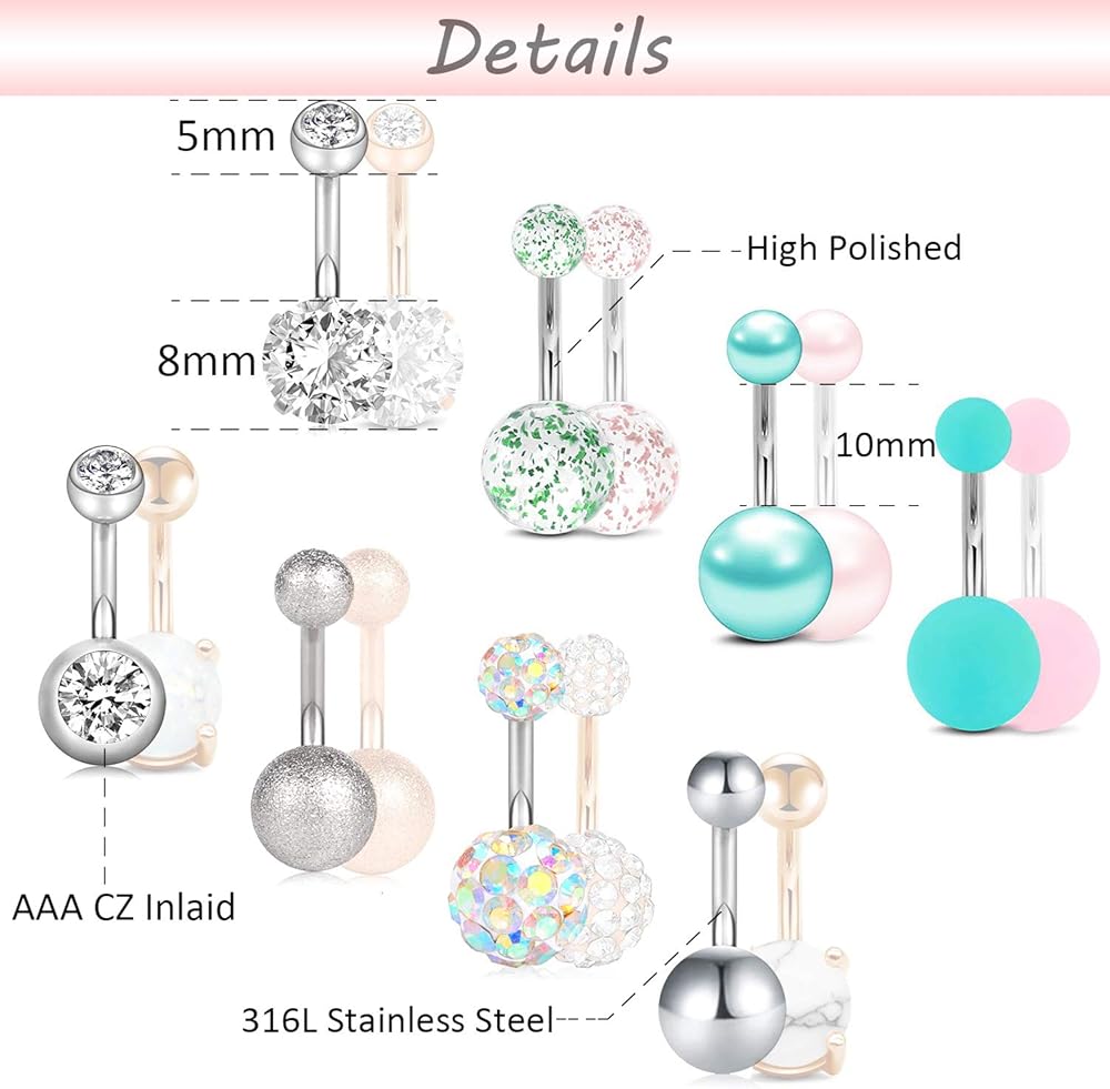 • ✿[مادة لا تسبب الحساسية]: حلقات البطن هذه مصنوعة من الفولاذ الجراحي، صحية ولا تسبب الحساسية، لامعة بدرجة AAA، لامعة وأنيقة، خالية من الرصاص والنيكل.