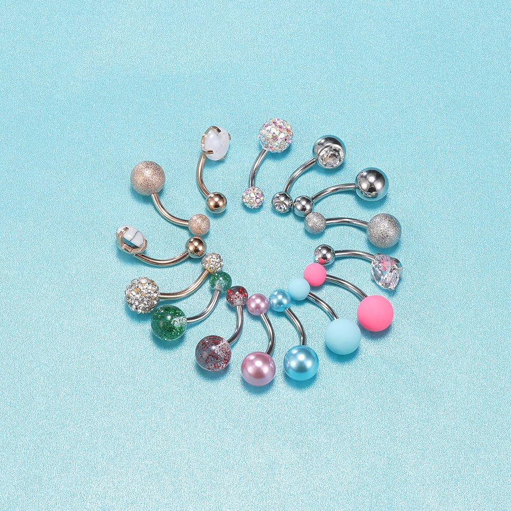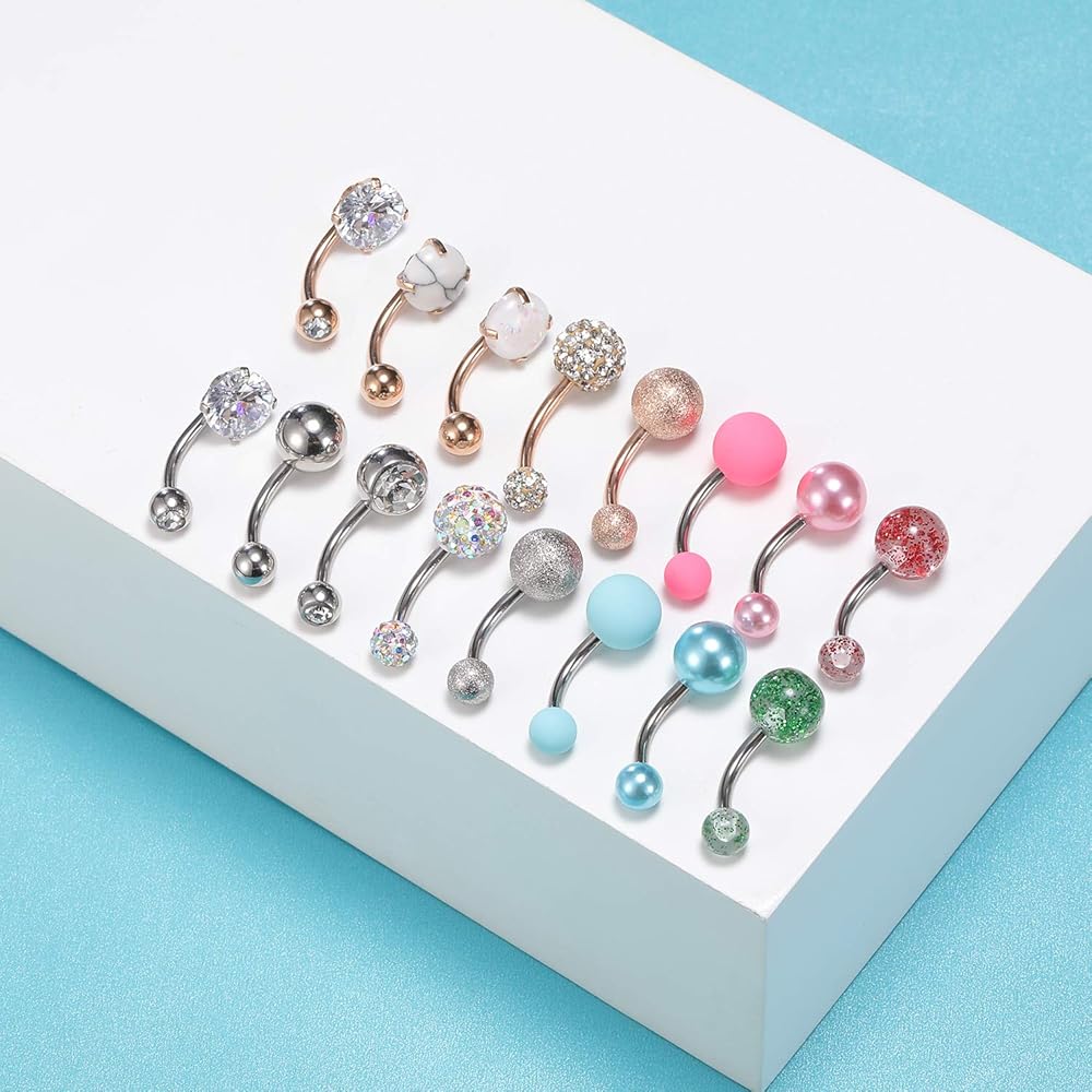 16 قطعة حلقات زر البطن الجراحية الصلب حزام البطن خواتم السرة ثقب البطن ثقب البحرية المجوهرات