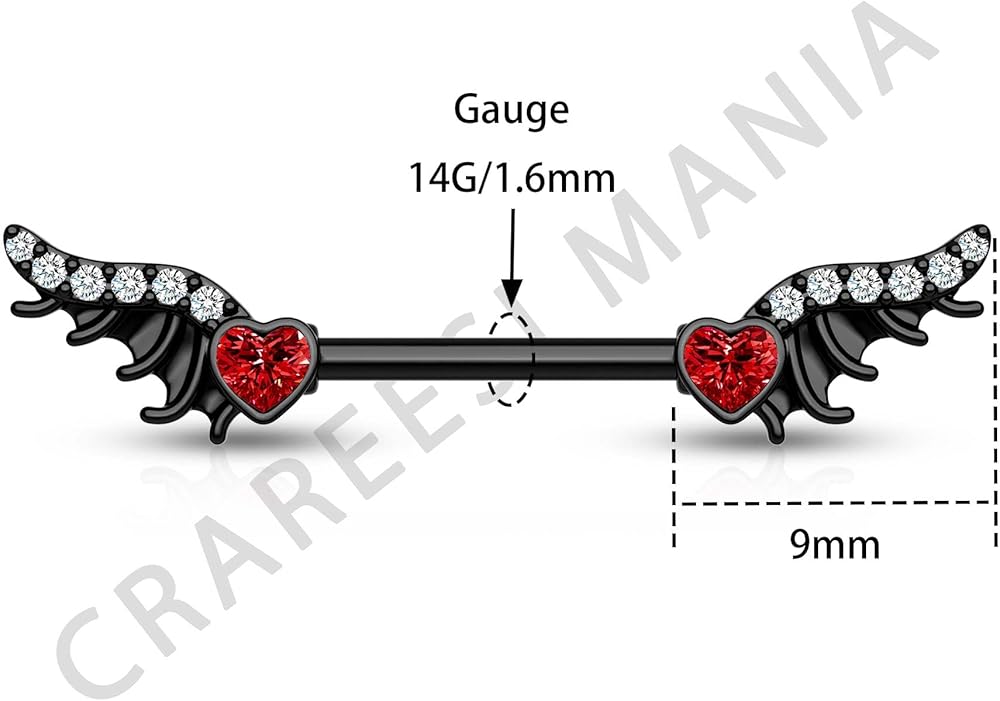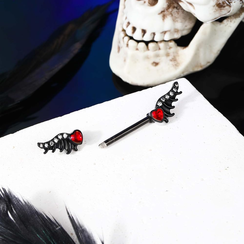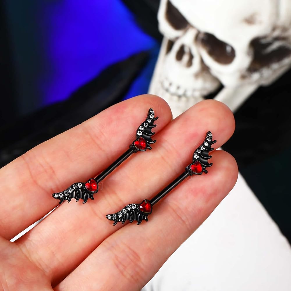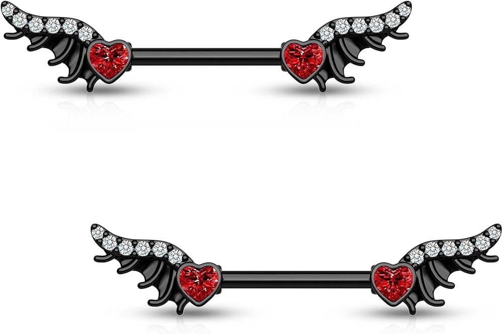 [تصميم مبتكر]: طلب واحد يتضمن قطعتين من حلقات الحلمة السوداء بتصميم جناح، التصميم يجعل الثقب أكثر شخصية.
