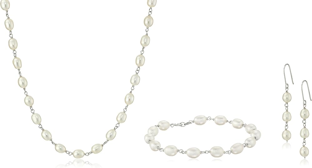 مجموعة مجوهرات من الفضة الاسترليني ولؤلؤ المياه العذبة البيضاء المزروعة بسوار وقلادة وأقراط