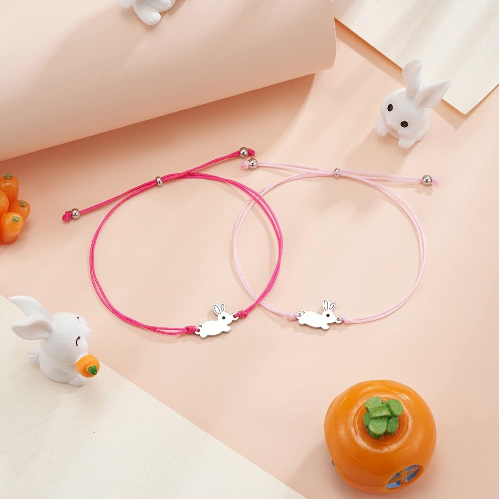 【 Adjustable size 】The bunny bracelets come with a sliding knot closure with adjusting from 4'' to 11'', to fit any wrist size. The bracelets are not easy to break and make comfortable for daily wear.