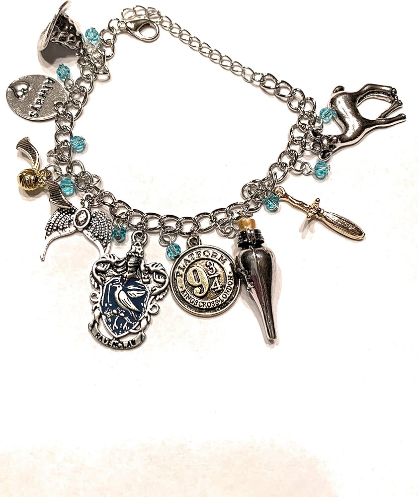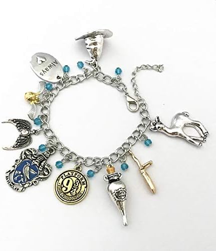 سوار بتعليقة بتصميم ساحر مستوحى من ساحر المدرسة السحرية مقاس 9 انش بلون فضي