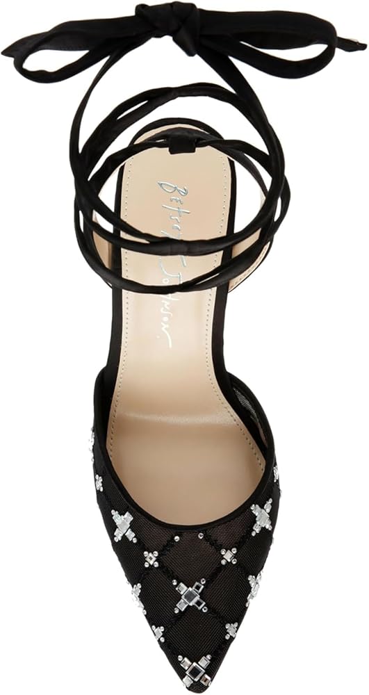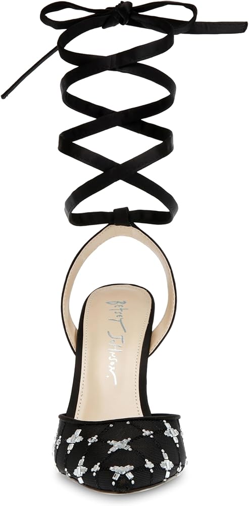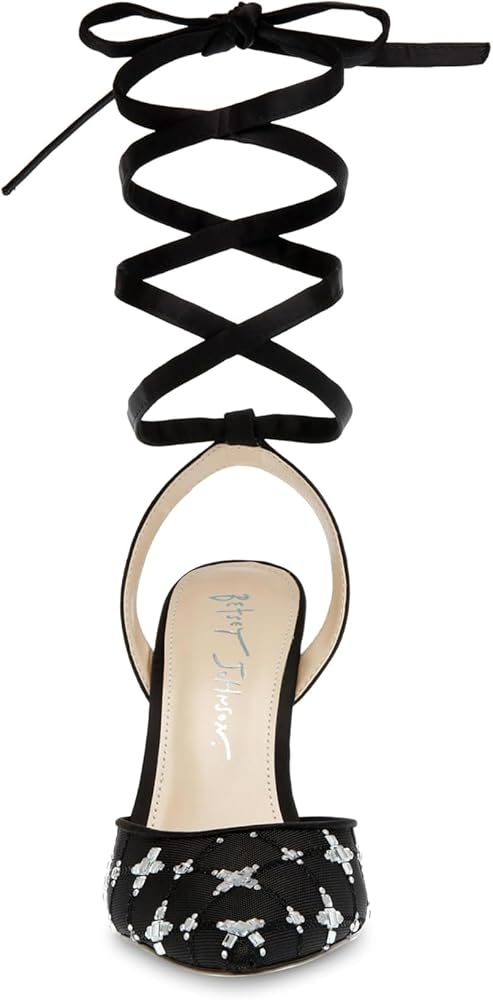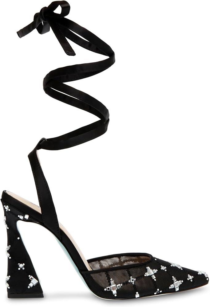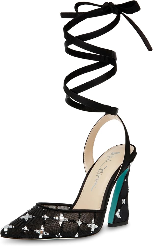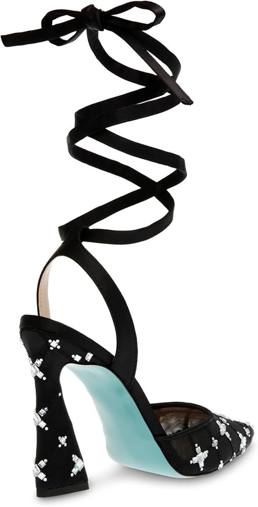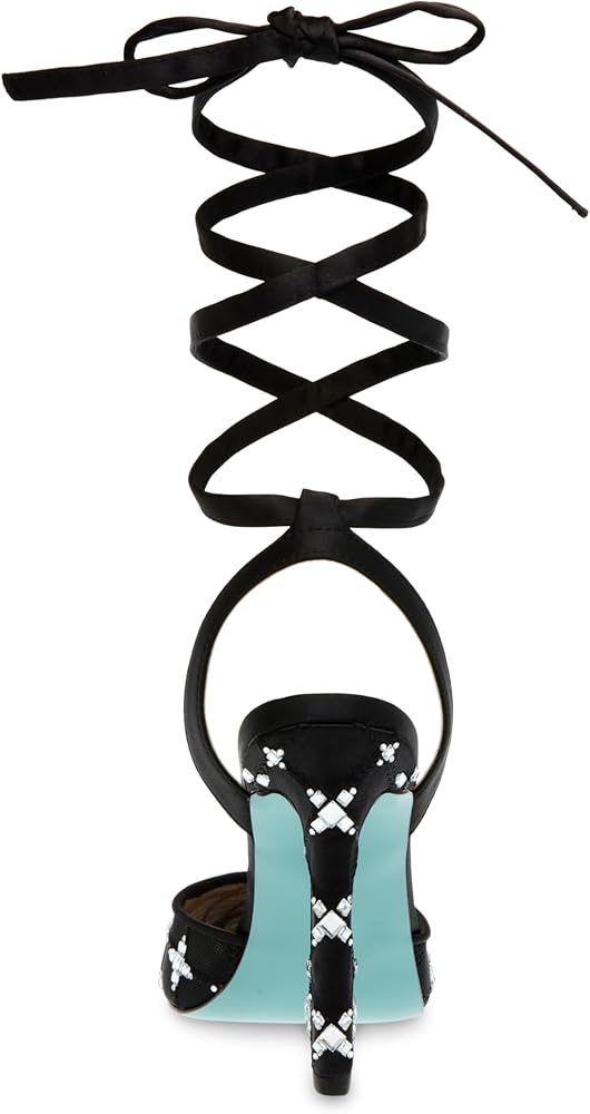 The SB-ANGEL heel features mesh rhinestone quilted details in the front, and lace up ankle straps with a sculpted heel in the back.
