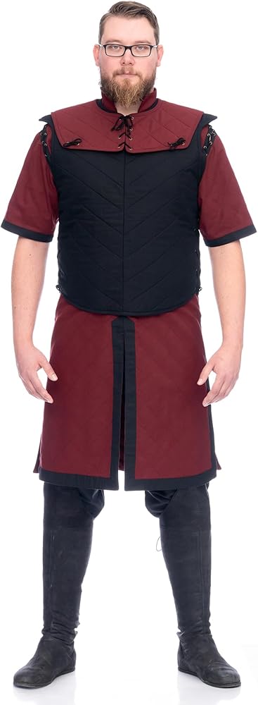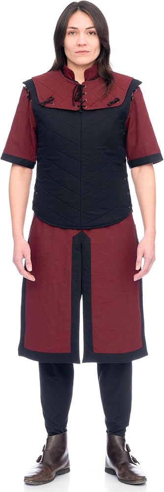This Dungeons and Dragons Fighter costume set consists of a tunic, quilted vest, and quilted shoulders, all of which are designed to help you look and feel like a fighter extraordinaire. The tunic features a stand-up collar and laced short sleeves at the shoulder, while the quilted vest is both padded and quilted for added protection and style. The quilted shoulders add an extra layer of toughness and intimidation to your look.