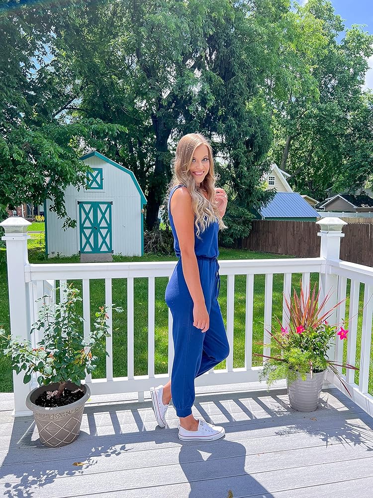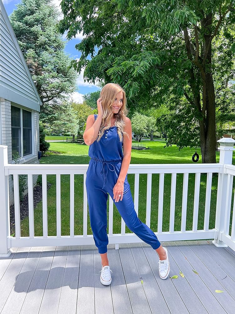 بدلة قفز نسائية صيفية كاجوال من STYLEWORD، زر خصر مرن برباط مع جيوب