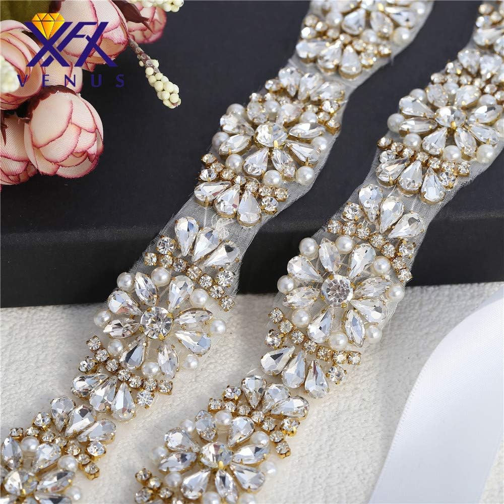 XINFANGXIU 1 ياردة الذهب حجر الراين مطرز فستان الزفاف زين سباركلي لشريط الزفاف حزام الحديد على الكريستال رقيقة مرصع بالجواهر وشاح زين للنساء حفلة موسيقية رسمية مساء ثوب وصيفة الشرف