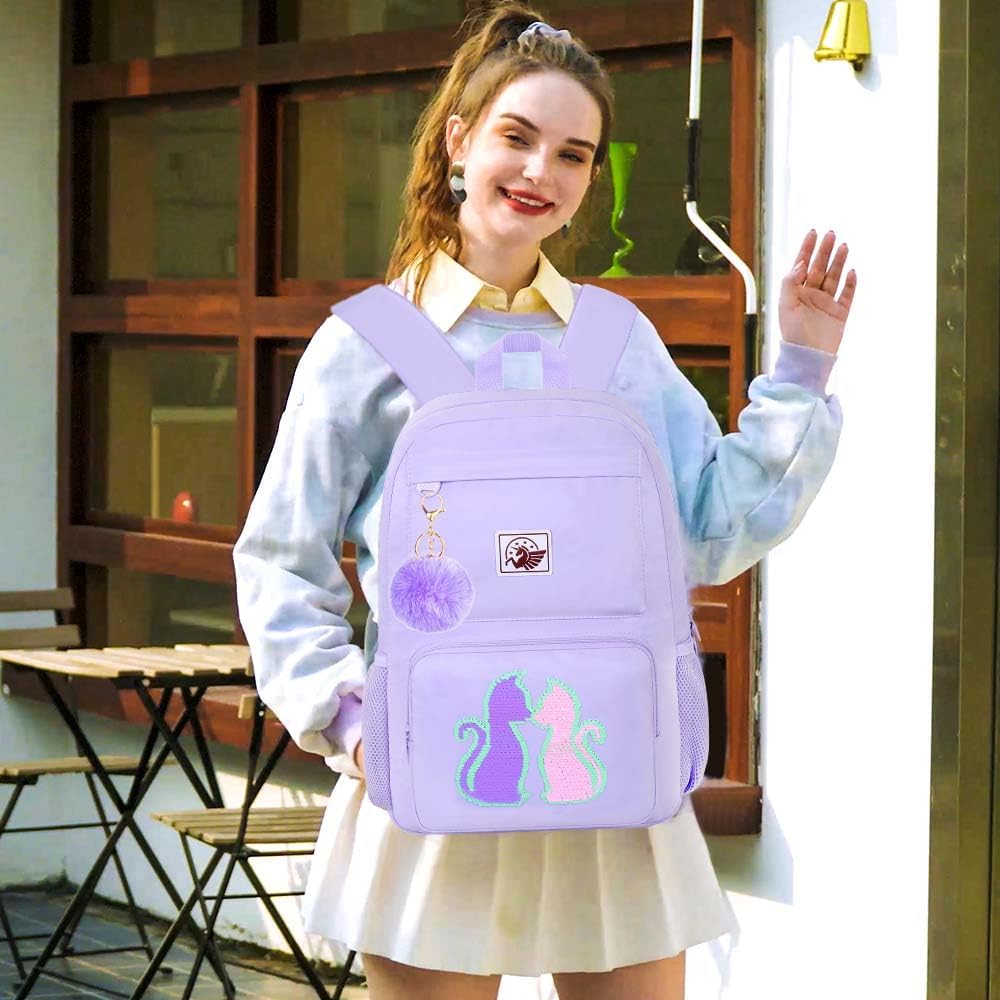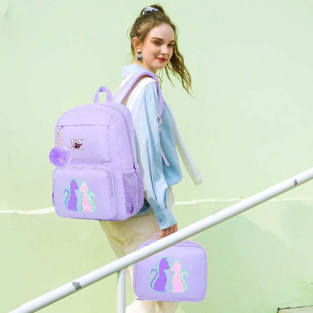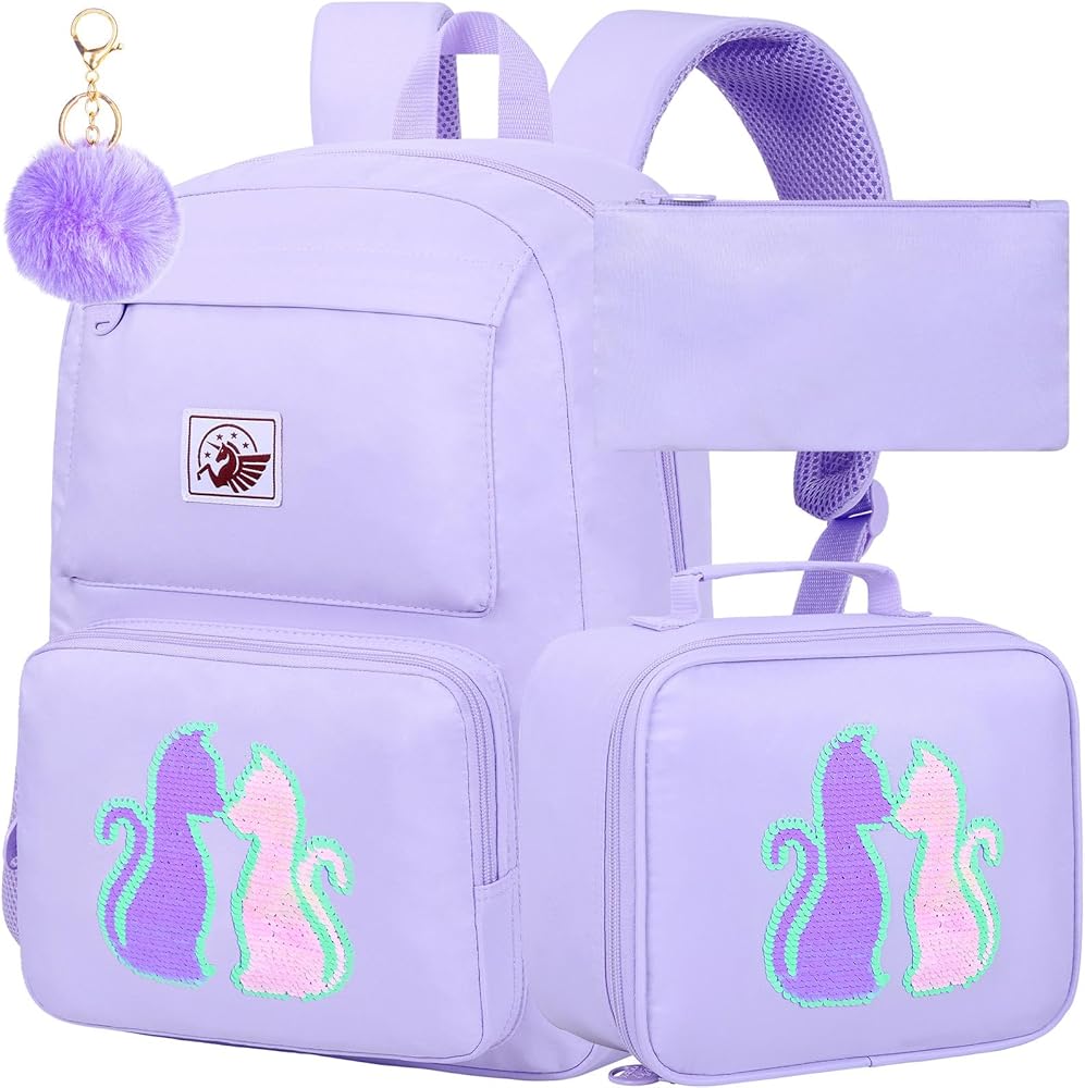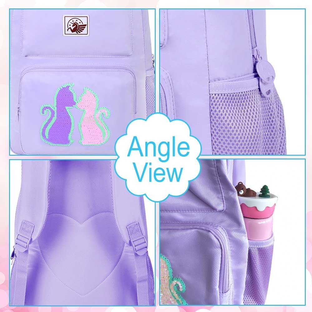 حقيبة ظهر للفتيات 3 في 1: حقيبة كتب مدرسية + حقيبة غداء + حقيبة أقلام، اشترِ مجموعة حقيبة ظهر واحدة واحصل على قطعة واحدة من كرات الفراء اللطيفة وقطعتين من هدية سحر يونيكورن (ملاحظة: يتم وضع قطعتين من سحر يونيكورن داخل الجيب الأمامي الصغير).