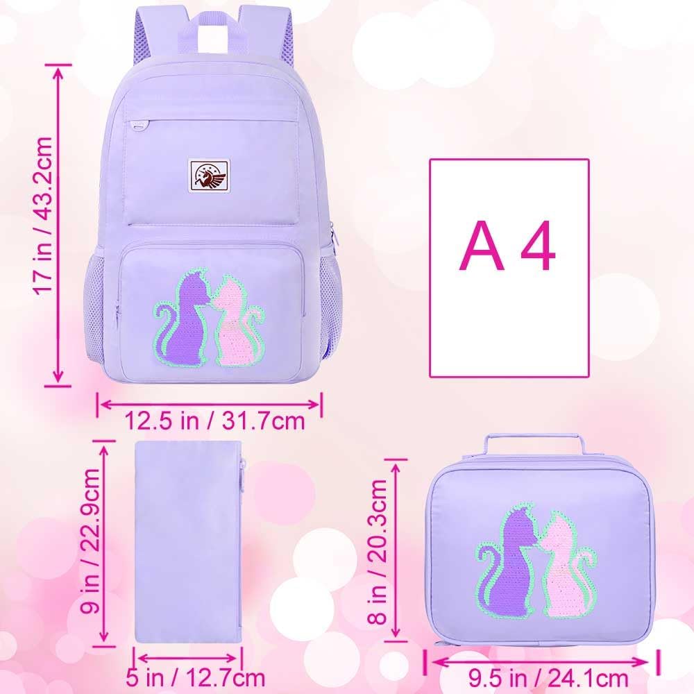 حجم المجموعة: مجموعة حقائب الكتب للفتيات بما في ذلك حقيبة الظهر: 13 بوصة (طول) × 17 بوصة (ارتفاع) × 6.5 بوصة (عرض)، حقيبة الغداء: 8.5 بوصة (طول) × 9.5¡±(ارتفاع) × 4 بوصة (عرض)، قلم الحافظة: 8.66 بوصة (طول) × 4.72 بوصة (ارتفاع) × 0.2 بوصة (عرض). تلبية احتياجات التخزين اليومية الخاصة بك.