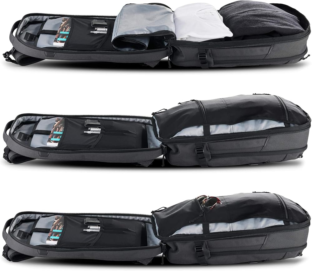 External organization - two zipped pockets, attachment points + elastic pocket for bottles
