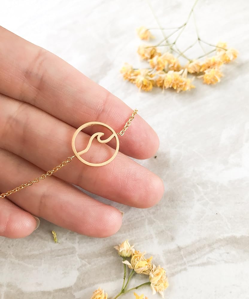 CIRCLE WAVE DESIGN: Once you put on our ocean bracelet with the lobster clasp, you can adjust the length anywhere from choker length to a long length 16 inches to 18 inches. So our cute wave charm necklace can be worn with many different tops or outfits! This ocean wave pendant bracelet will look amazing for any birthday party or as a present!