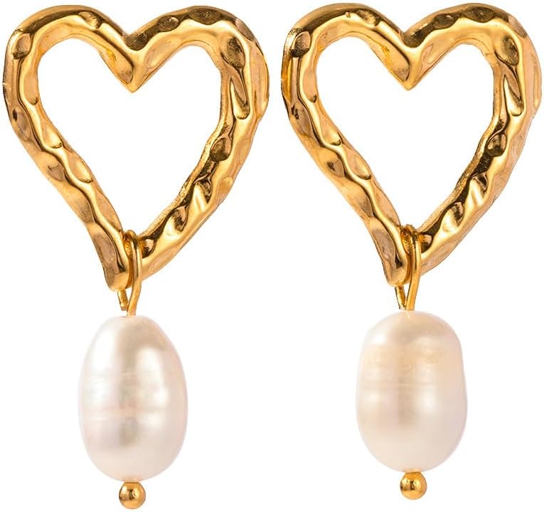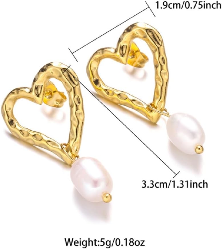 أقراط بسيطة عصرية: أقراط بتصميم على شكل قلب ولؤلؤ المياه العذبة، التصميم بسيط، فريد جدًا، إنه بيان أزياء كل امرأة! خفيف الوزن وسهل الملاءمة، مريح للارتداء اليومي