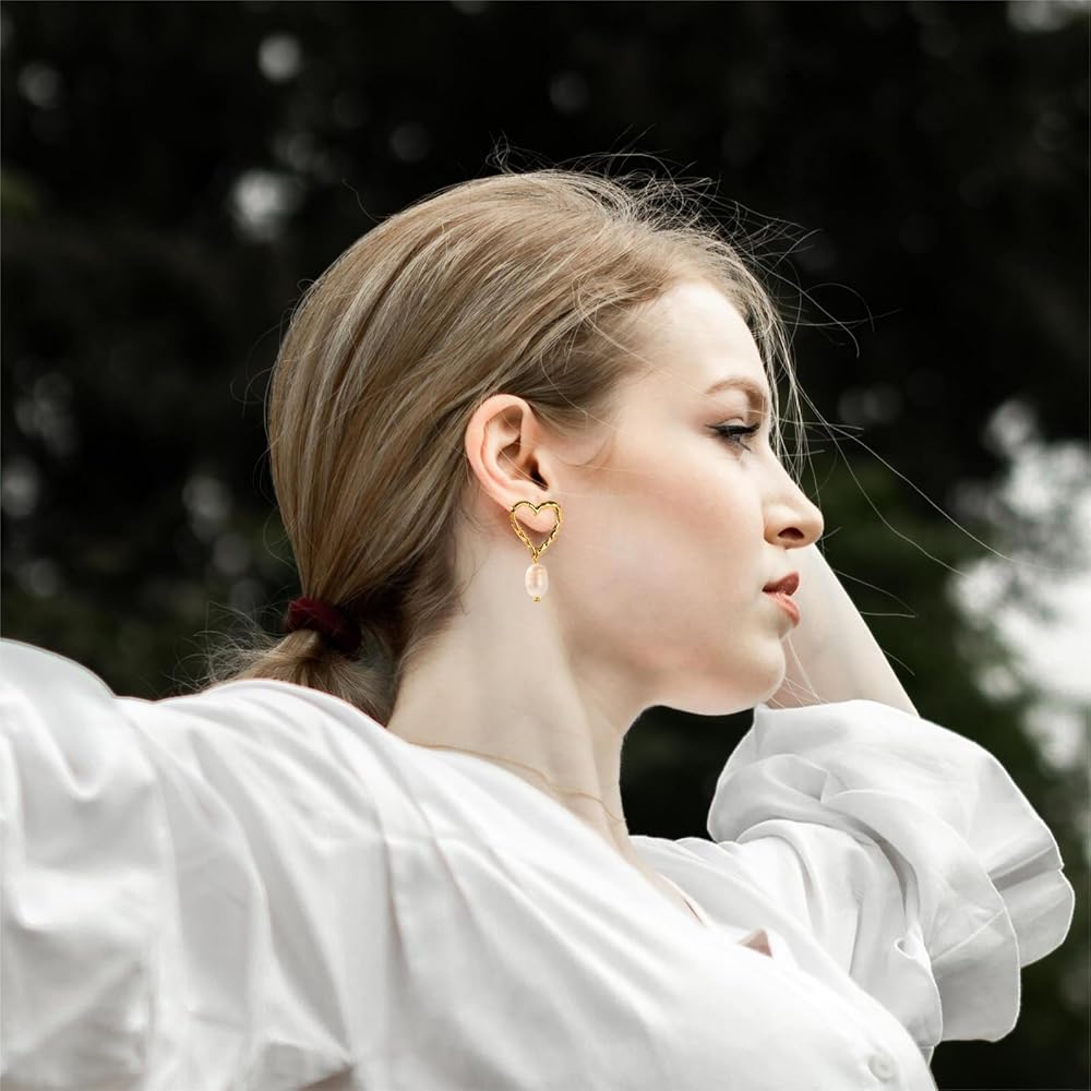 أقراط اللؤلؤ المتدلية: هذه الأقراط اللطيفة على شكل قلب تعد هدية رائعة للعائلة أو الأصدقاء، مما يسمح لك بالتعبير عن حبك في العطلات الخاصة والذكرى السنوية، اختيار هدية مدروس