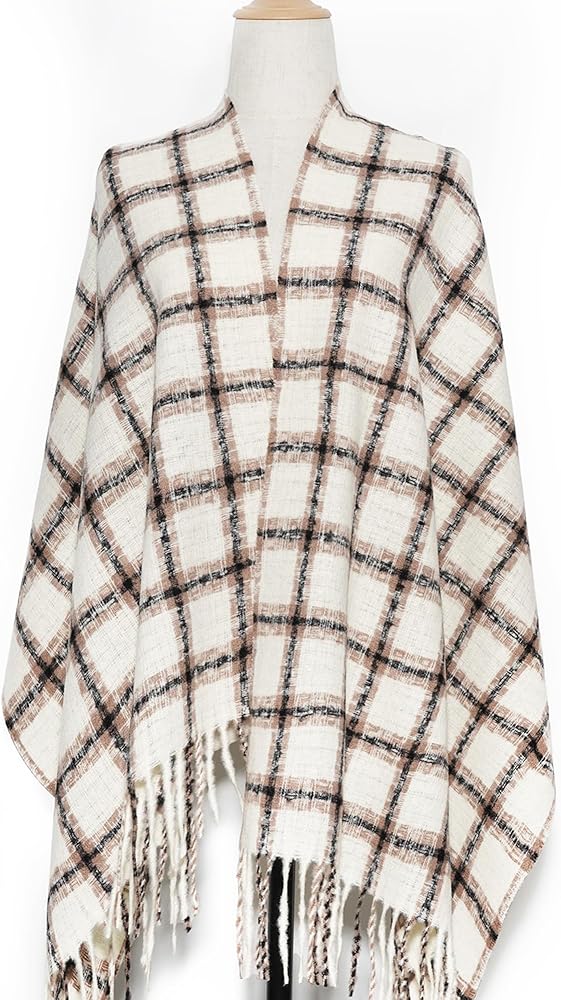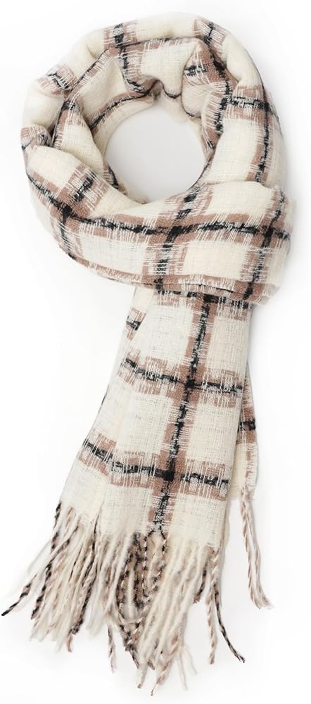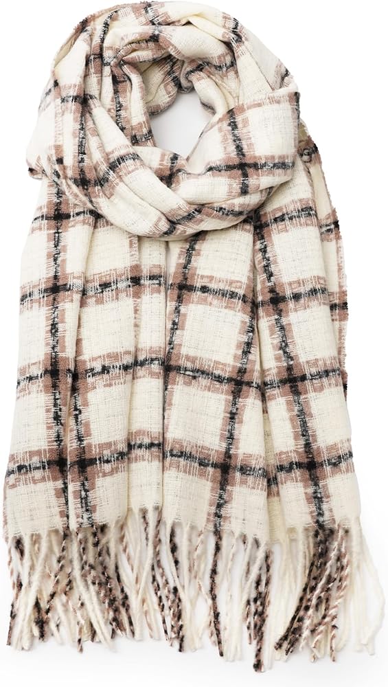 VANLINKER وشاح عصري لخريف وشتاء للنساء كلاسيكي شرابة منقوشة بطانية دافئة مكتنزة كبيرة شعرية التفاف شال VL9323