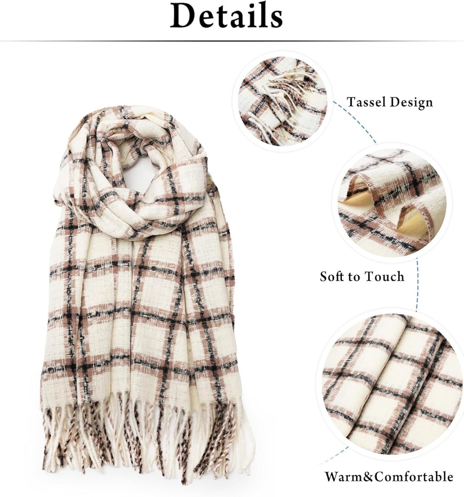 • 🧥تصميم عصري: يتماشى اللون الخالد مع المنقوشة، ويبني نمطًا بسيطًا وعصريًا. هذه الأوشحة الشتوية الأنيقة ستناسب أي زي سواء كانت مناسبة رسمية أو كاجوال، ومناسبة في فصلي الخريف والشتاء للحياة اليومية أو العمل أو الملابس الكاجوال أو ملابس الشارع أو الحفلات.