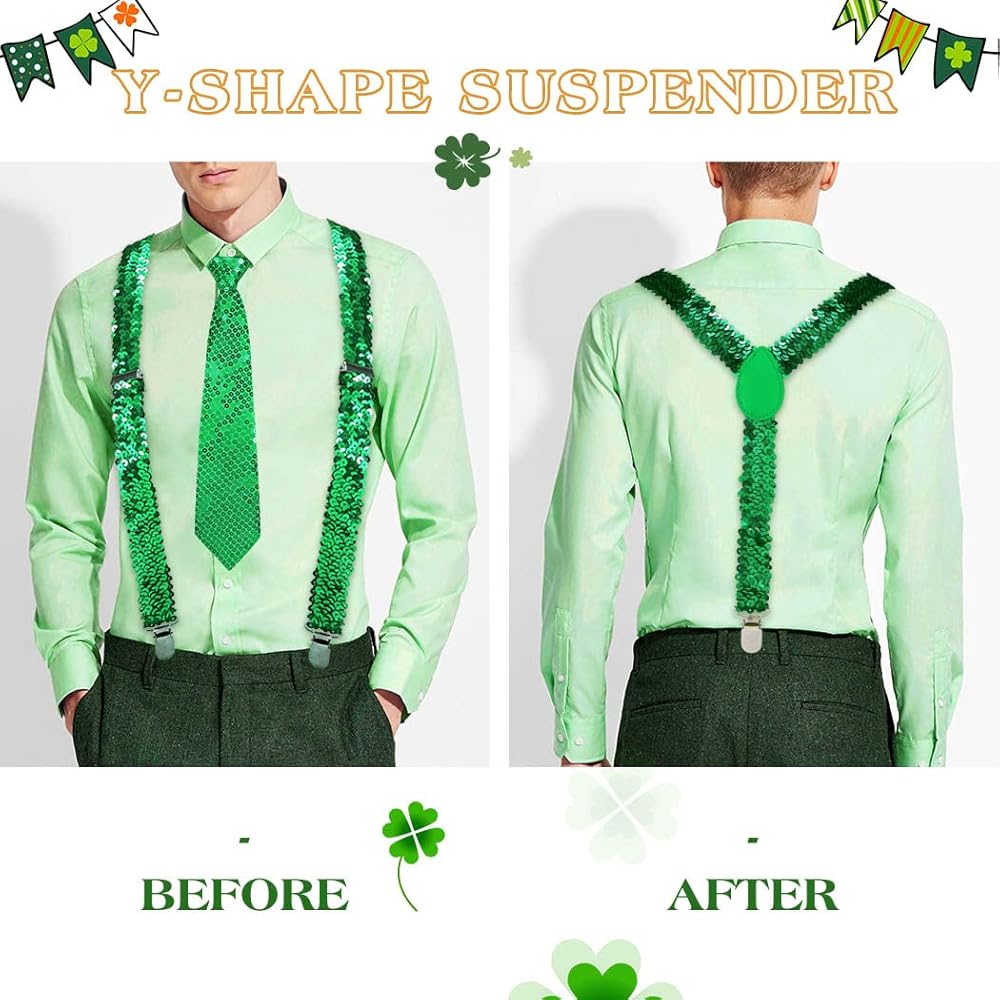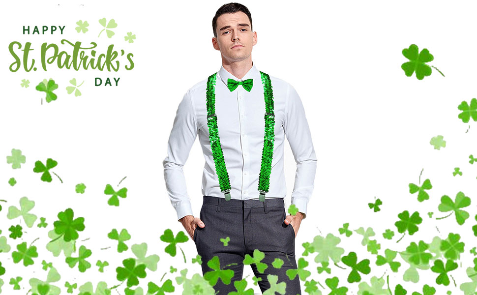 Men's suspenders has a unique and simple design.This suspender set consists mainly of sparkling sequins,which let you be the brightest person in Irish festivals.
