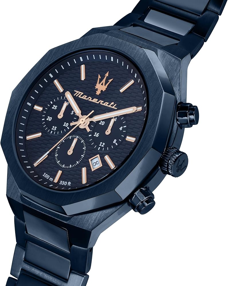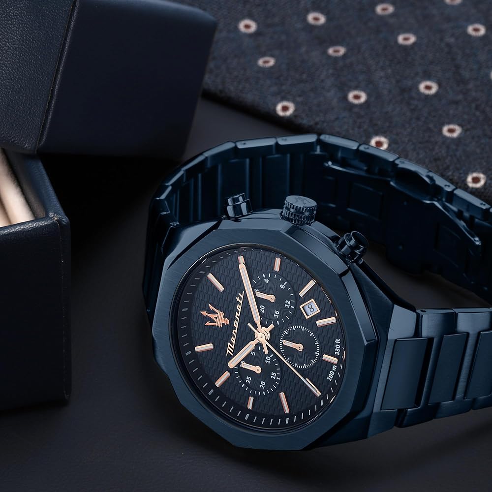 [المواد] ساعة مازيراتي STILE للرجال مصنوعة من الستيل بلون أزرق مع سوار ستيل وفراشة مع أزرار دفع