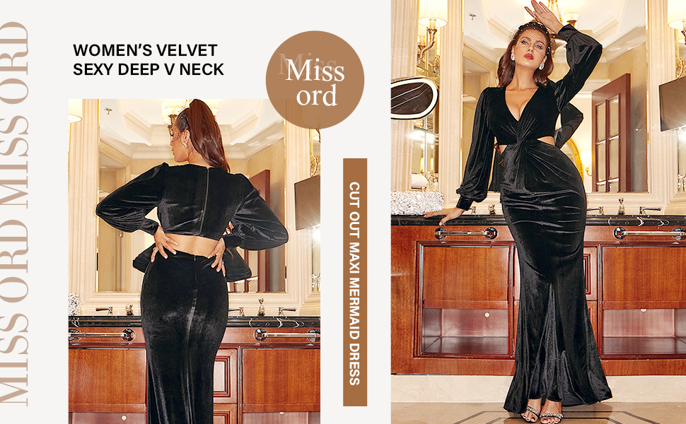 التصميم: هذا التصميم الكلاسيكي للفستان المخملي الأسود مع رقبة على شكل حرف V مثيرة، وبوديكون، وعقدة ملتوية في النصف العلوي، وخصر مقصوص، ووسط، وأكمام طويلة، وحاشية حورية البحر الأنيقة. سوف تظهر سحرك ومزاجك النبيل في المهرجانات.
