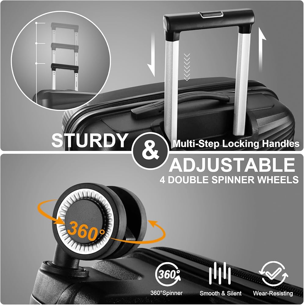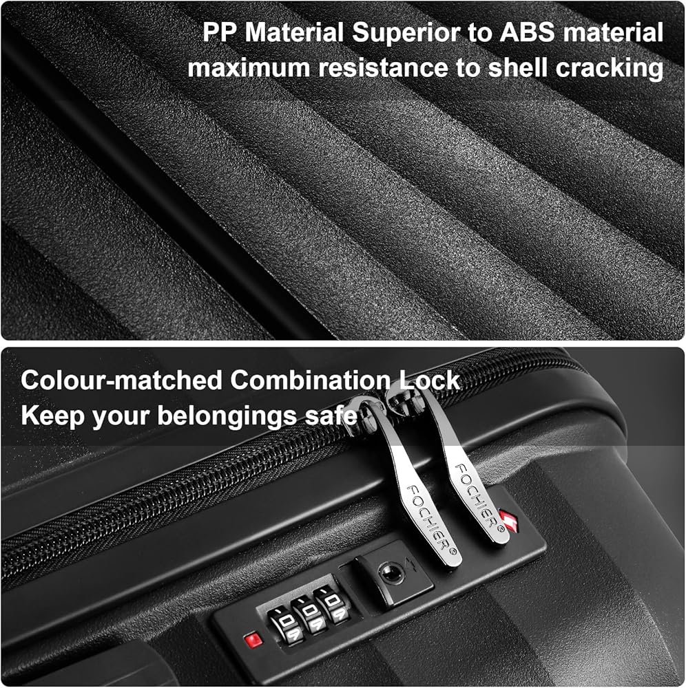 مجموعة حقائب السفر هذه مصنوعة من مركب البولي بروبلين خفيف الوزن والمتين والمقاوم للصدمات، وهي مادة فائقة القوة ستساعد على الحفاظ على أغراضك محمية حتى إذا تم إلقاء حقيبتك من قبل وكلاء الأمتعة.