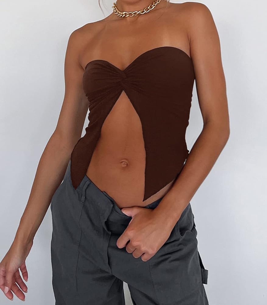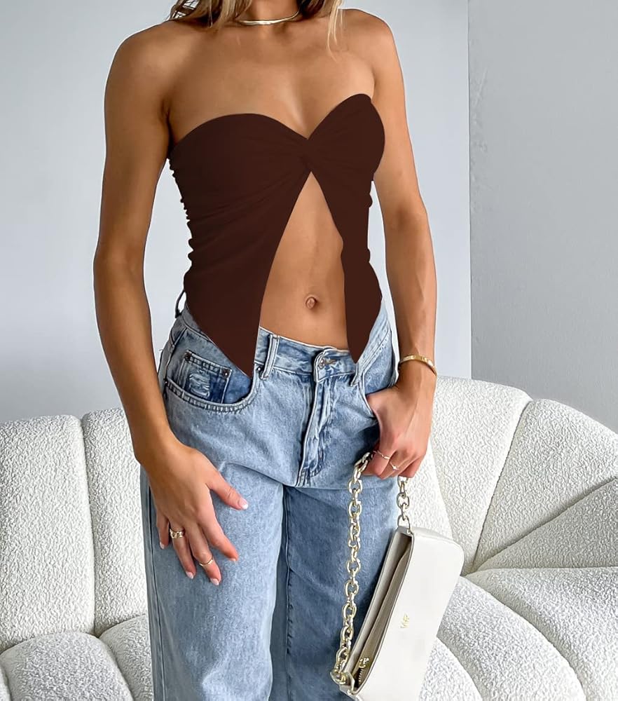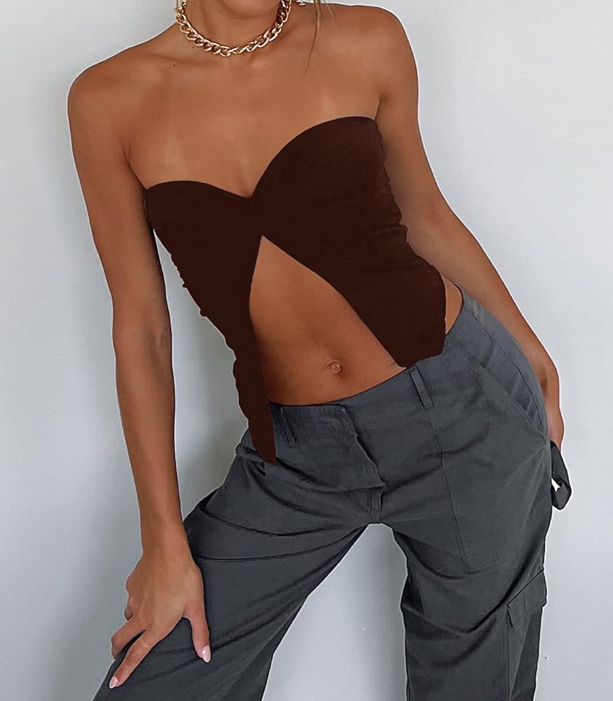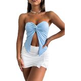 المواد: قمصان قصيرة مثيرة ذات عقدة ملتوية للنساء، مصنوعة من نسيج مزيج القطن الناعم، قابلة للتمدد، خفيفة الوزن، مريحة. هذه القمصان بدون أكتاف مثالية لفصل الصيف.
