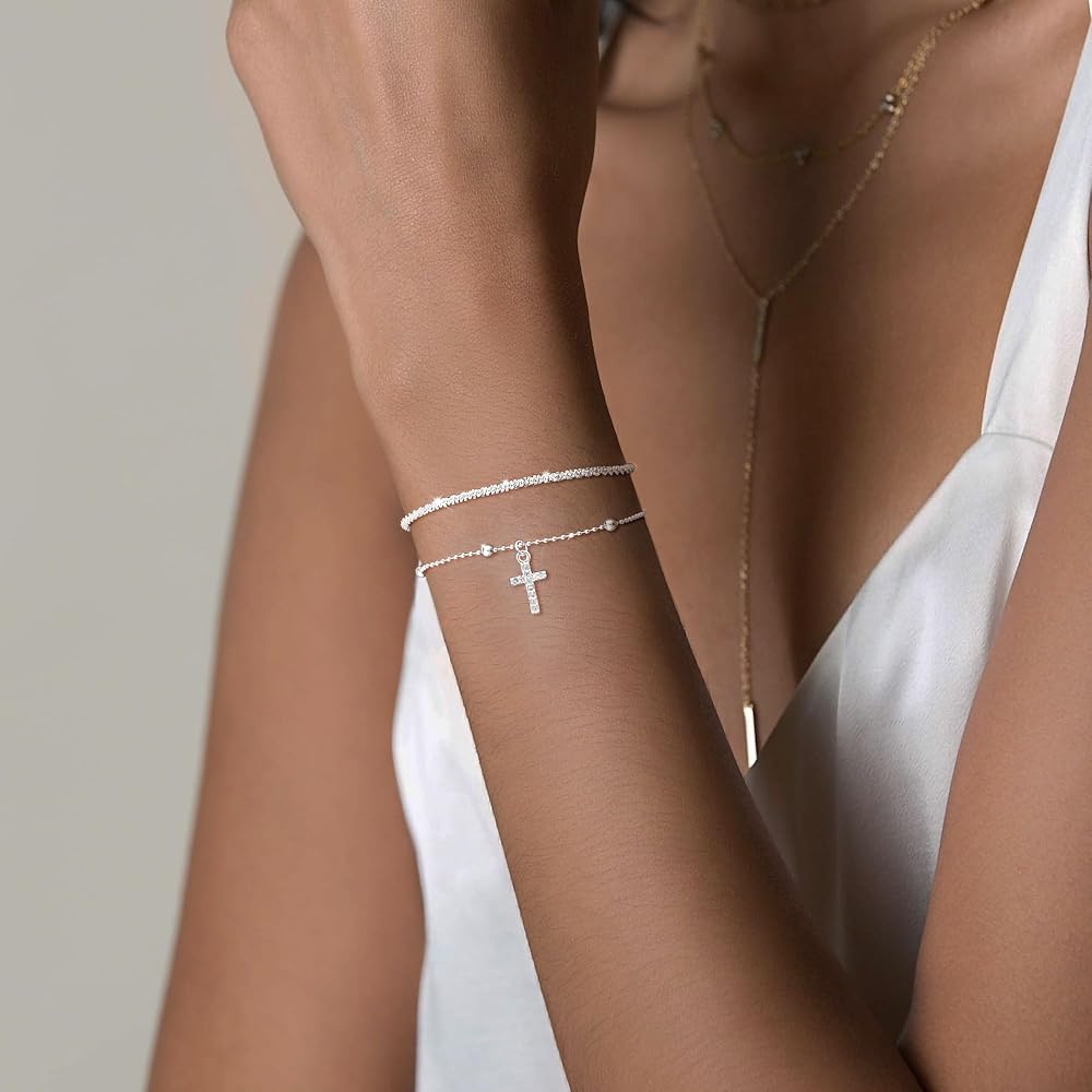 🎇【سوار متقاطع أنيق】بسيط وسخاء! - سوار متقاطع أنيق يلمع بريق غني، مما يضيف لمسة أنيقة إلى النمط الأساسي. يمكن ارتداؤها بمفردها أو مع سلاسل أخرى، فهذه السلسلة ضرورية لخزانة ملابسك اليومية.