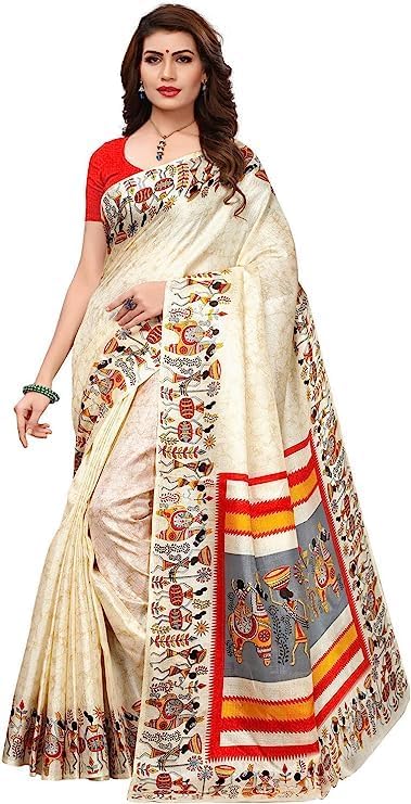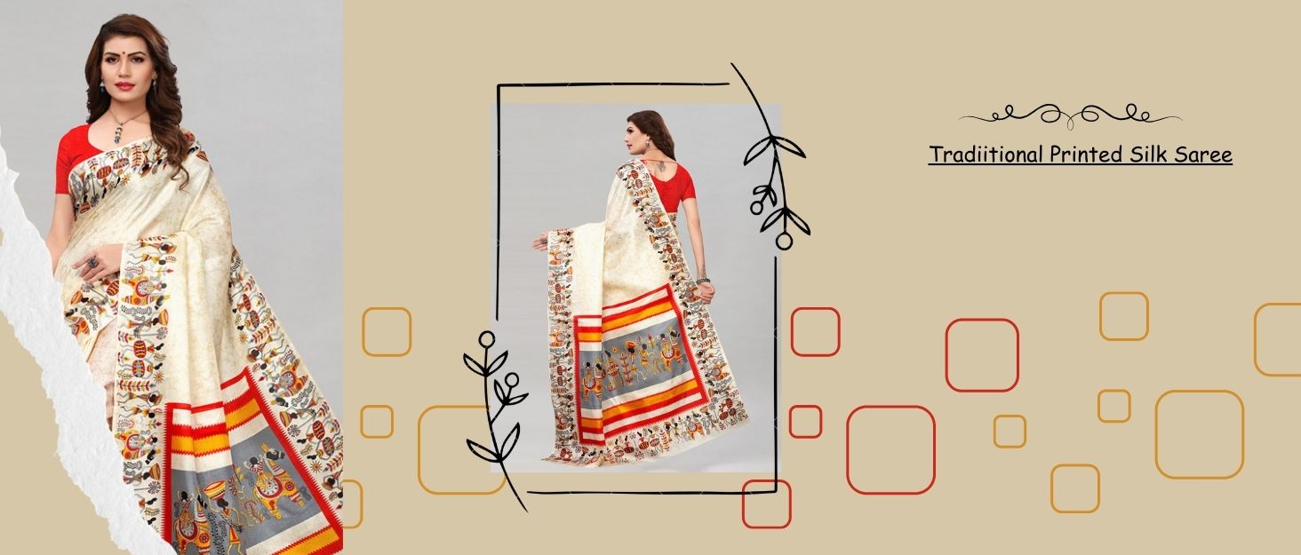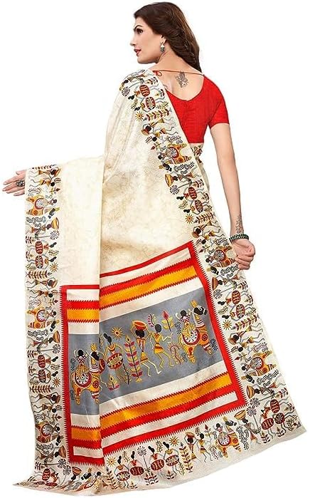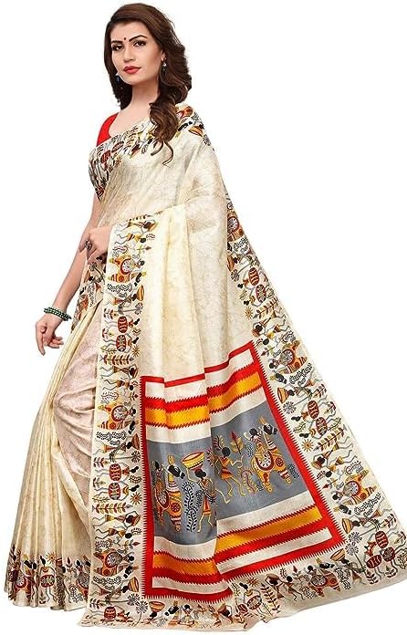 ساري حريري خادي مطبوع للسيدات مع قطعة بلوزة غير مخيطة