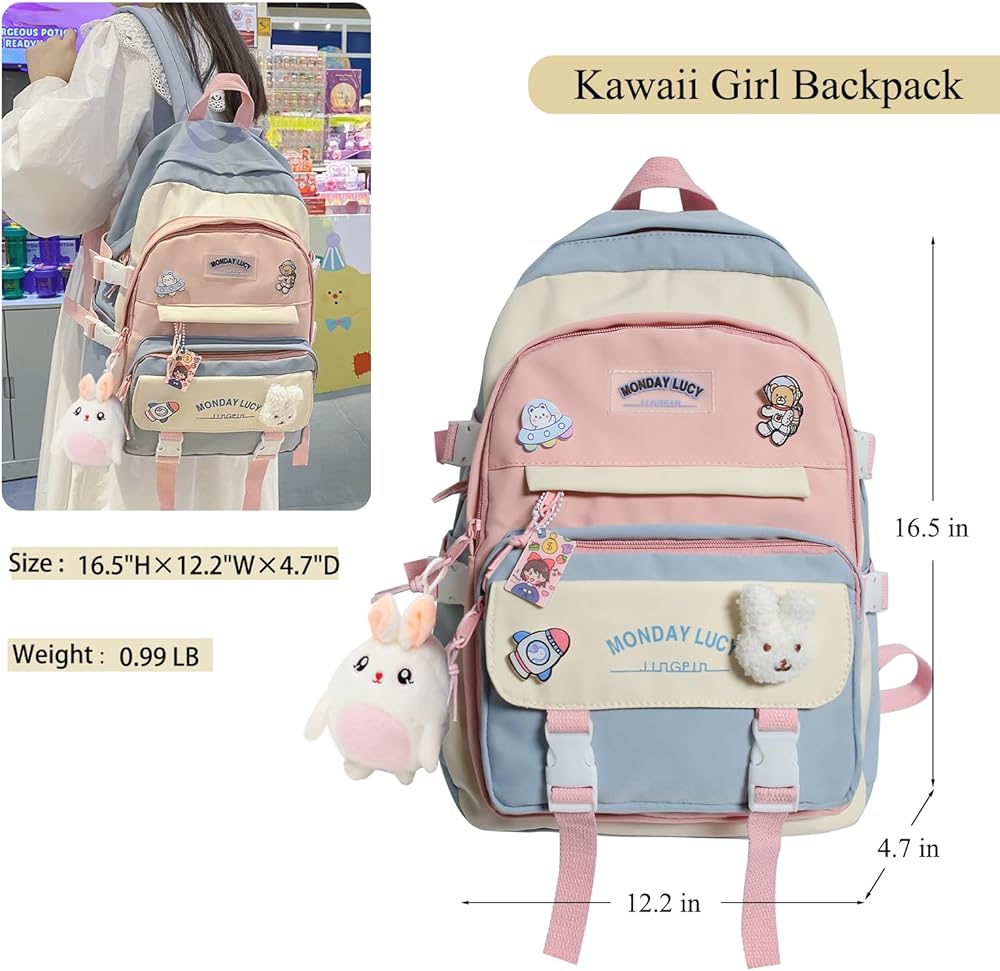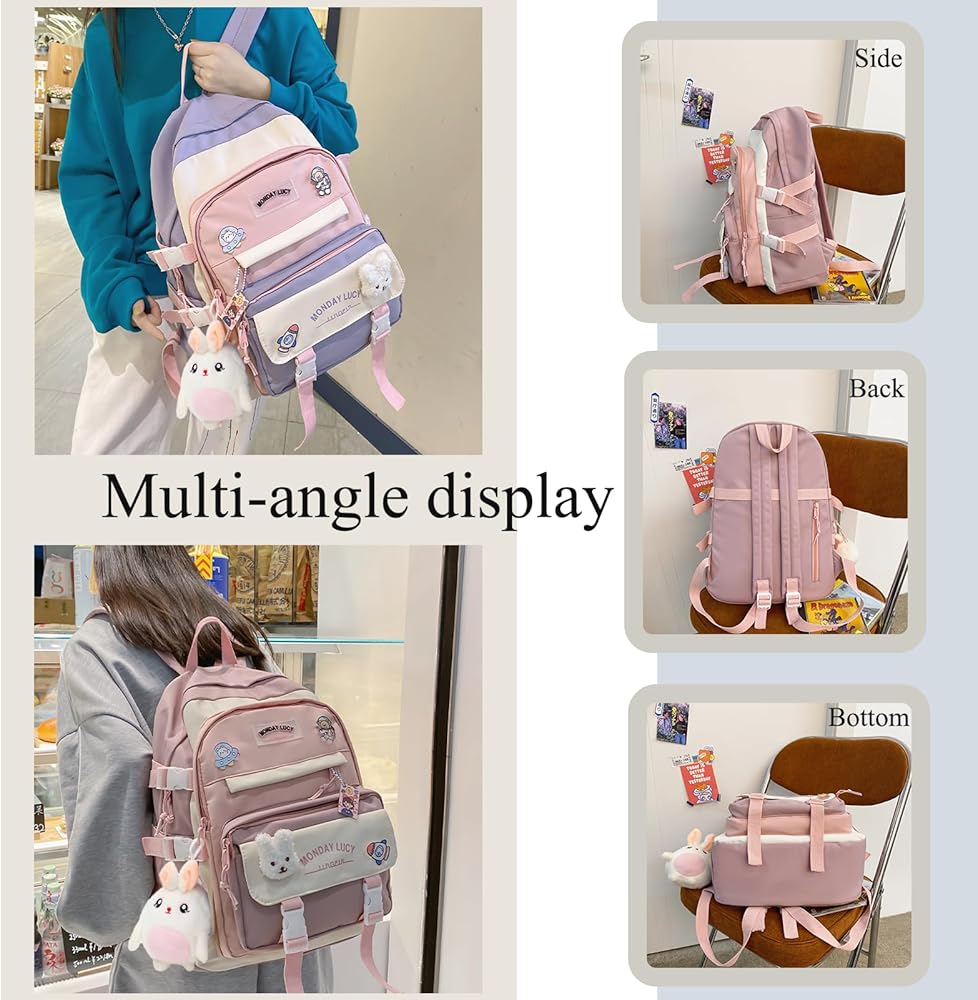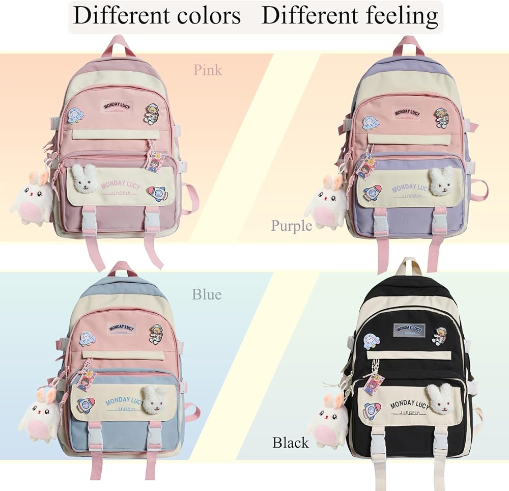 ❤ تتميز حقيبة الظهر للفتيات: بألوان زاهية وغنية مع دمى قطيفة لطيفة ودبابيس كاواي، لطيفة جدًا، وهدية مثالية لعائلتك وأصدقائك.