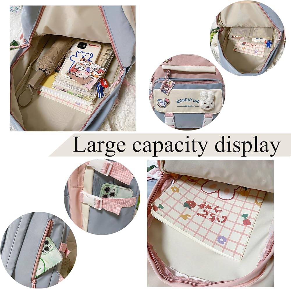 ❤ سعة حقيبة الظهر كبيرة، وهناك جيوب متعددة لتخزين أغراضك، مثالية للمدرسة والتسوق والسفر وغيرها من الأماكن للاستخدام، إذا لم تتمكن من العثور على دبابيس قلادة حقيبة الظهر وغيرها من الملحقات، فلا تقلق، فقد يتم وضعها في جيب الحقيبة المدرسية، تحتاج إلى مطابقة ما تفضله.