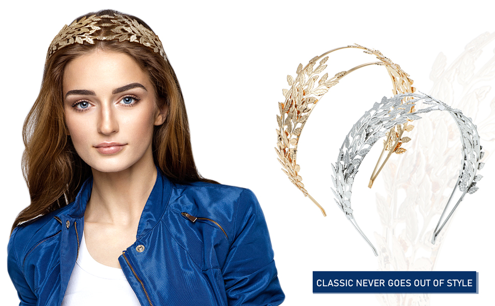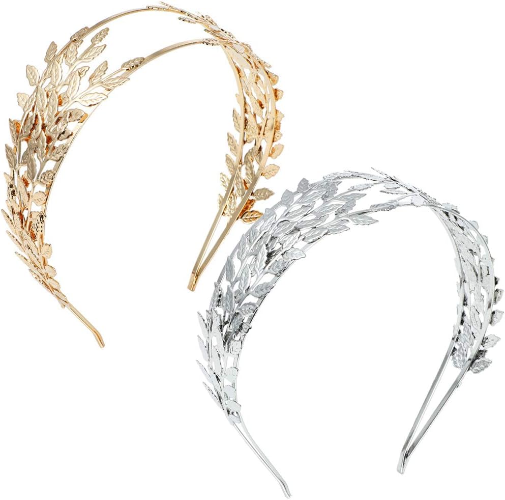 2 قطعة من عصابات الرأس الورقية للنساء من نودجي - تيجان جوديس ذهبية للنساء - حفلة تنكرية - عصابة رأس على شكل ورقة جوديس رومانية - تاج للشعر للنساء - عصابة رأس للحفلات