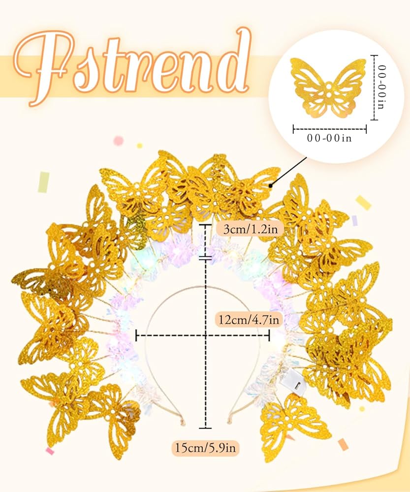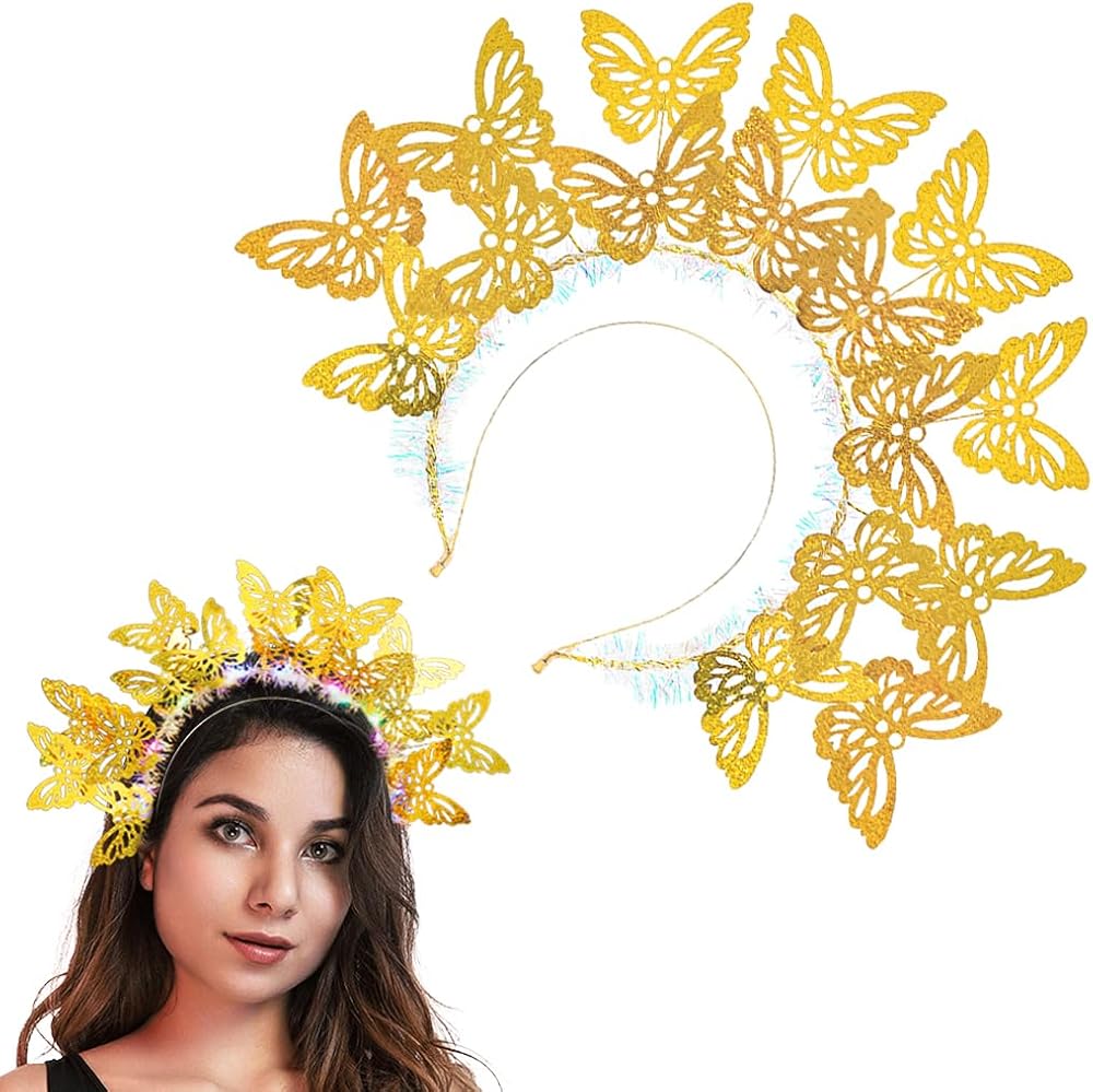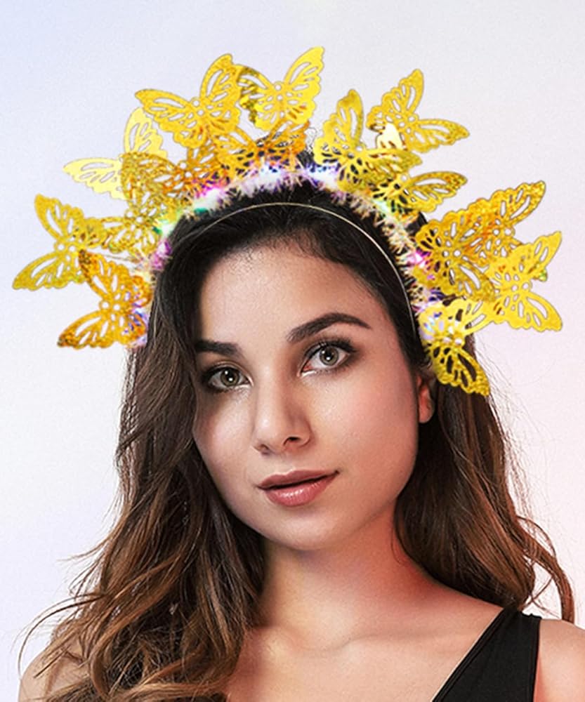 4.Women luminous costume headwear is lightweight to wear a long time,handmade design,novel style,colorful butterflies are attached on the flexible alloy wires. The butterflies can be bent into different positions.