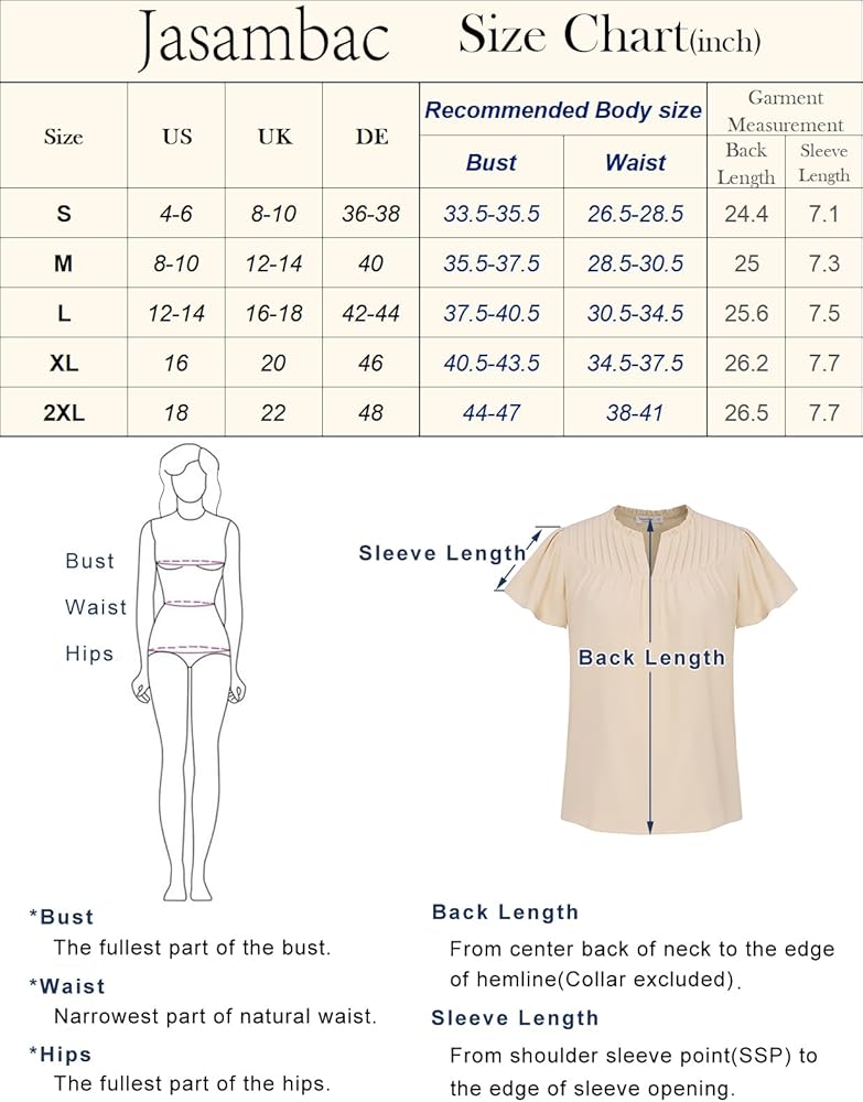 • الخامة - هل أنت قلق بشأن جودة هذه القمصان النسائية الكاجوال الأنيقة؟ بلوزات وقمصان JASAMBAC النسائية الأنيقة مصنوعة من 98% بوليستر و2% فيسكوز، وهي مادة خفيفة الوزن وناعمة وحريرية وصديقة للبشرة ومريحة. إنها بسيطة ولكنها أنيقة. نسيج صديق للبشرة يوفر الراحة والأناقة طوال اليوم. هذا القميص النسائي سيبقيك منتعشًا وأنيقًا في الصيف.