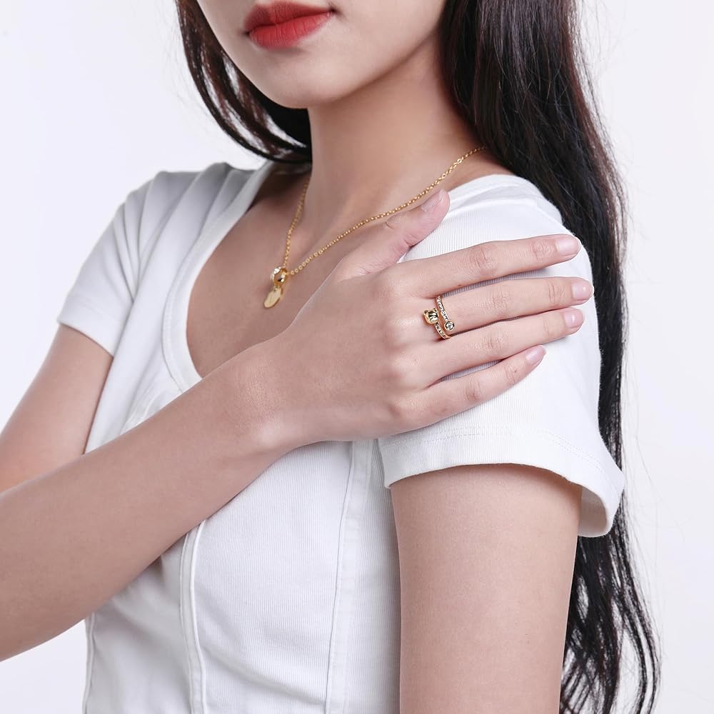 • حلقة قابلة للتعديل مطلية بالروديوم مع كريستال، لا تسبب الحساسية، لا تبهت ولا تسبب تهيج لبشرتك