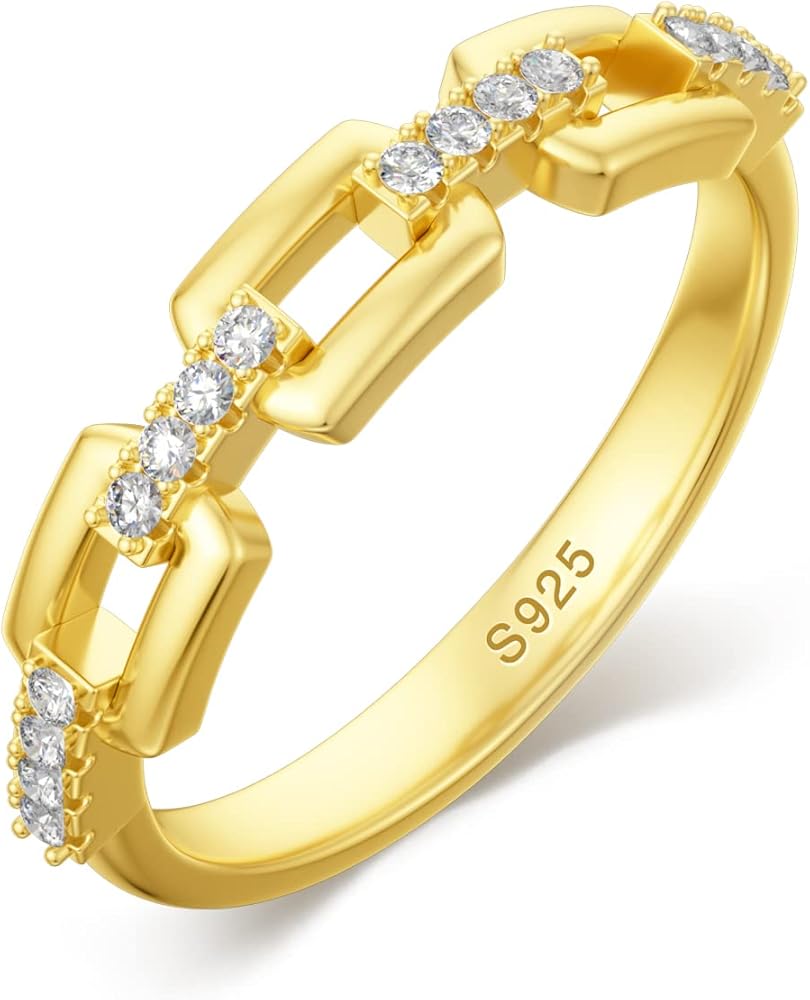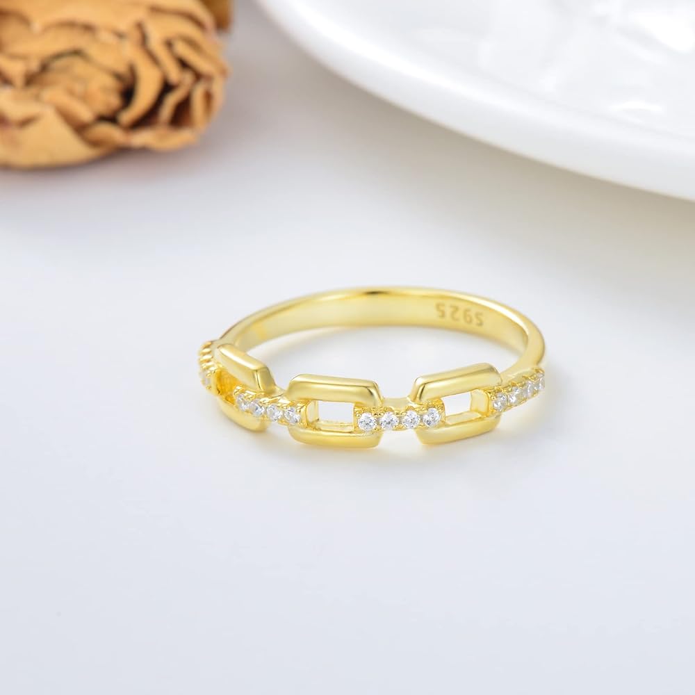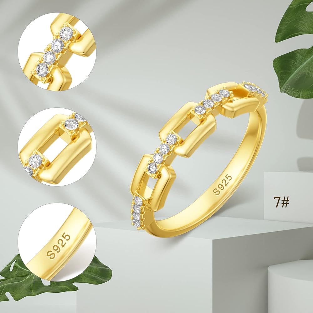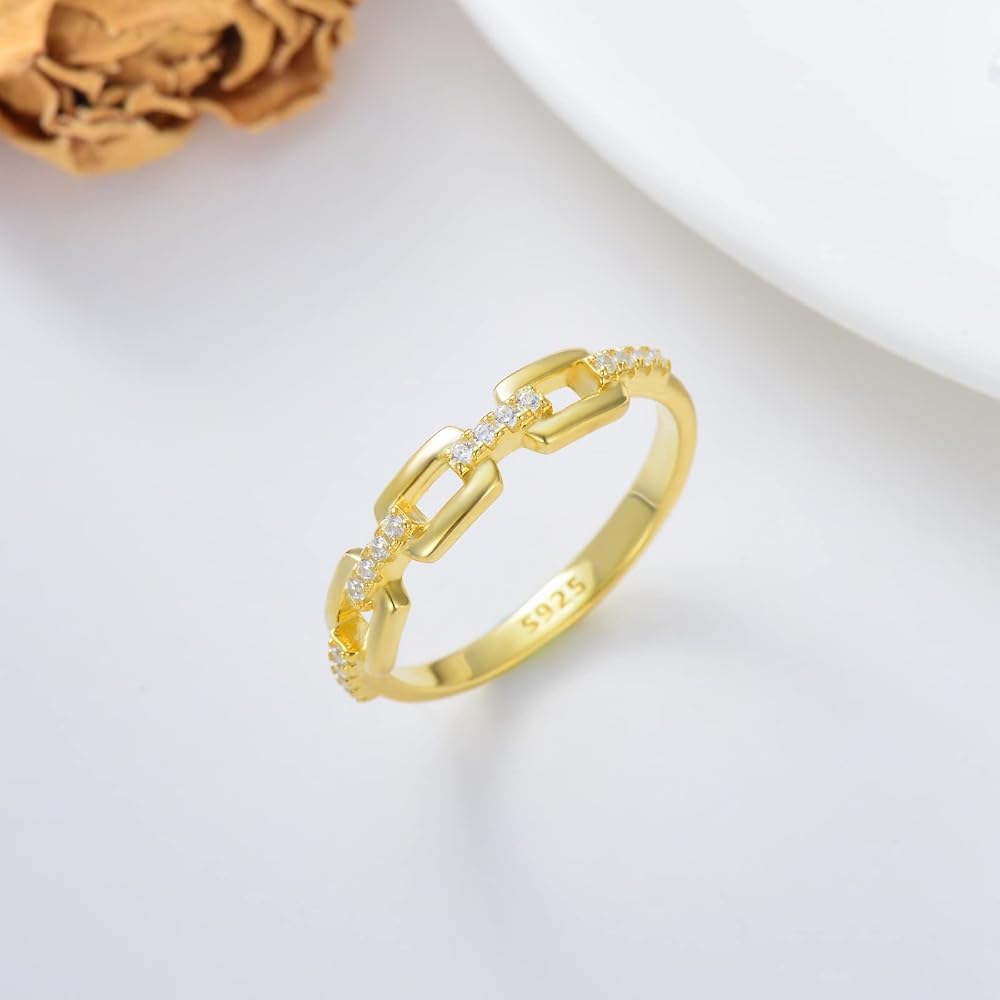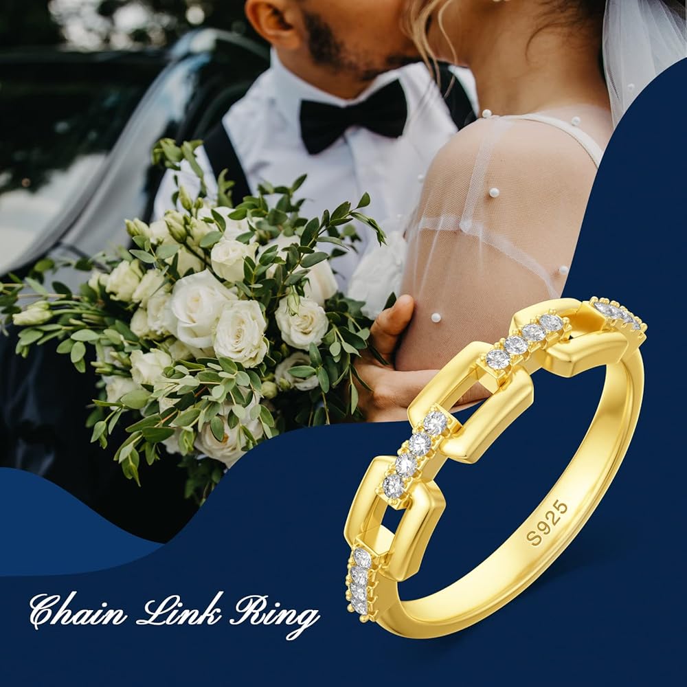 حلقات السلسلة: خاتم الفضة الإسترلينية الخاص بنا مستوحى من الحب والأناقة. مصنوع من الزركون الأبيض ووصلات سلسلة، وهو بسيط ولكنه عصري، ويمكن أن يناسب ملابسك جيدًا.