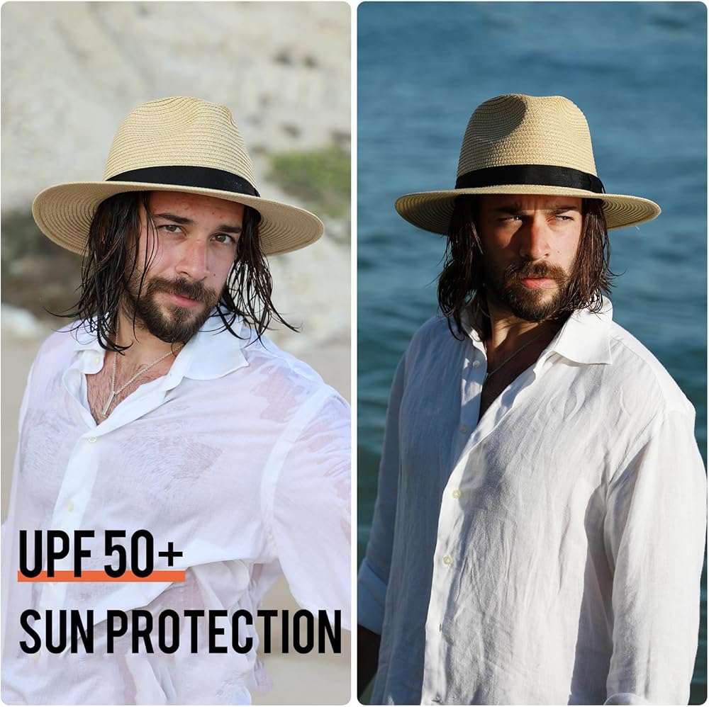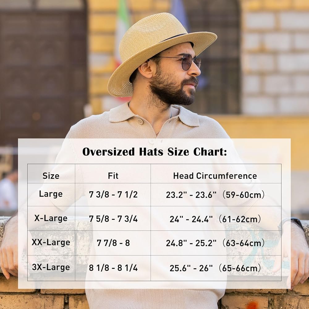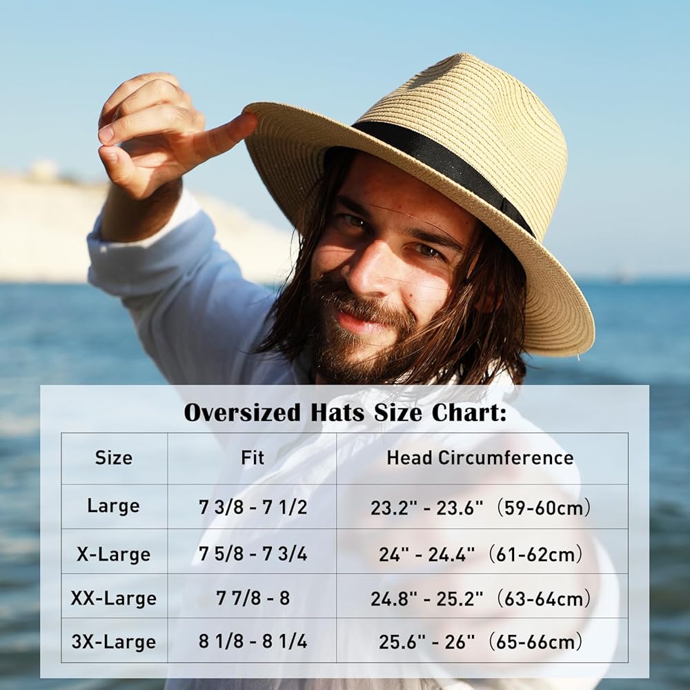 Comhats كبير الرأس XXL الرجال الشمس القش فيدورا قبعة للنساء، قابلة للتعبئة قبعة للشاطئ واسعة حافة بنما قبعة الأشعة فوق البنفسجية UPF 50 + قبعة الصيف للجنسين